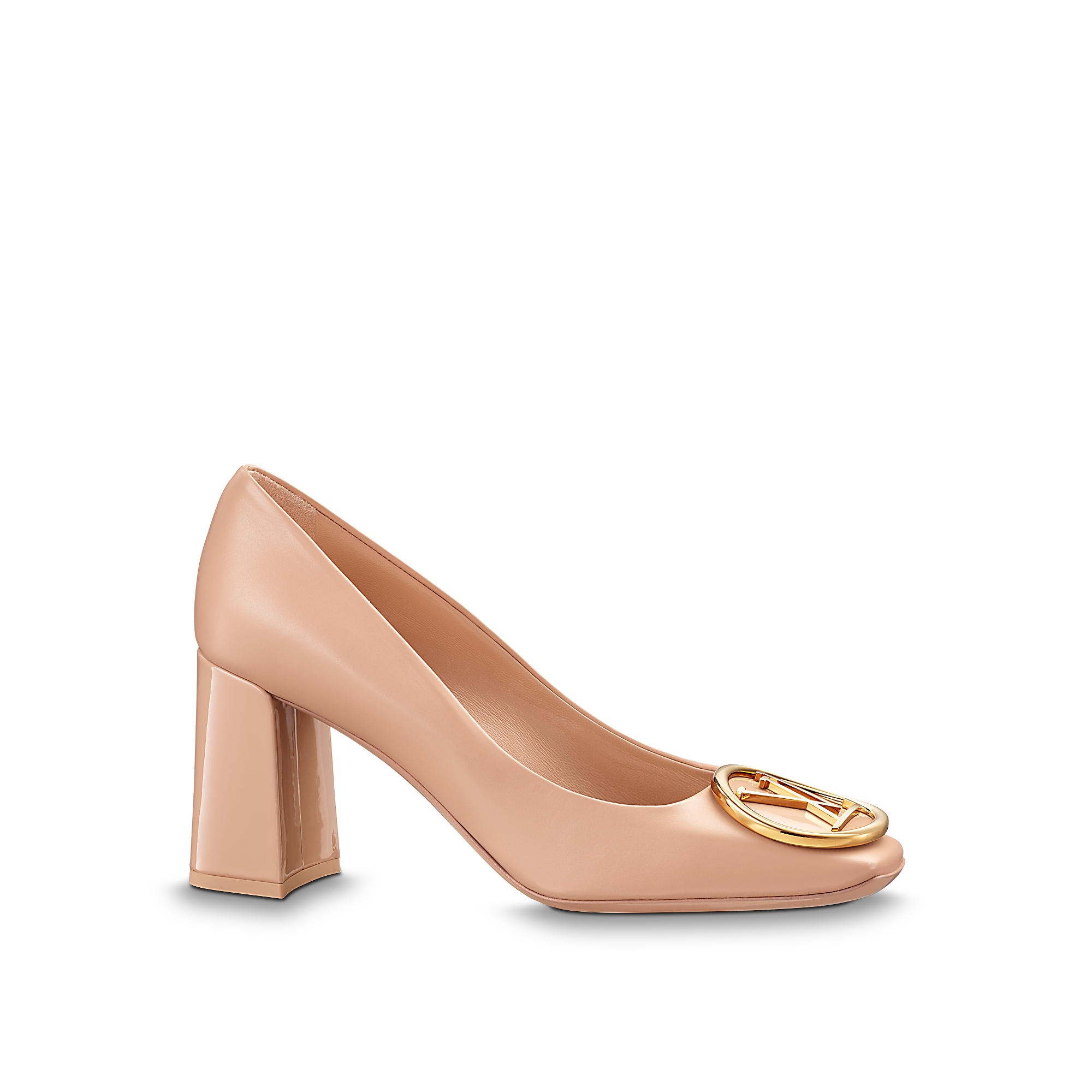This ladylike pump is given a subtle retro twist by its square toe and chunky heel. It is embellished with an oversize LV Circle accessory.