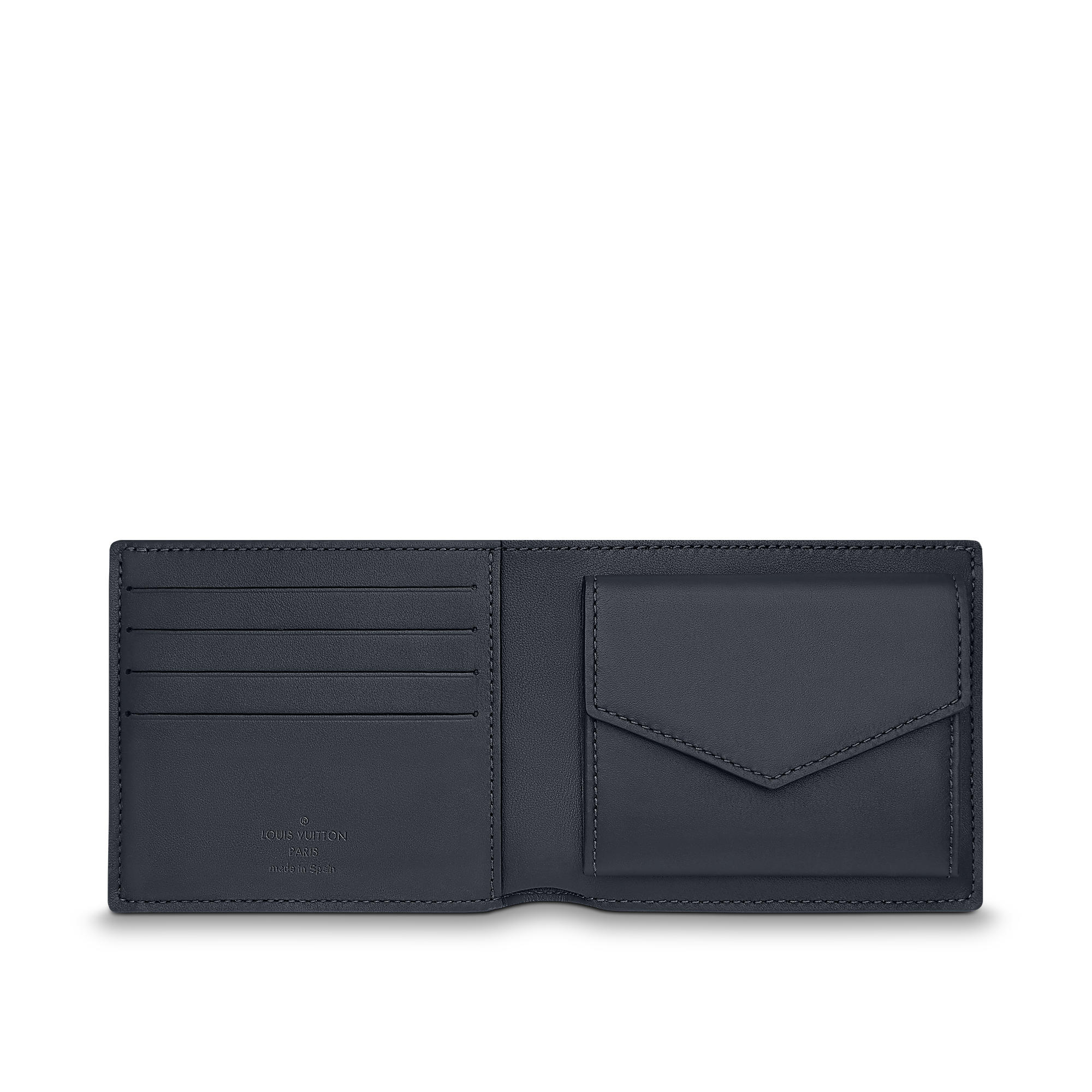 The elegant Damier Inifinite leather, delicately embossed with the iconic pattern of the House gives a very masculine and refined touch to this Marco Wallet. An elegant way to carry around cards, cash and coins due to its functional square shape which fits comfortably in any pocket.