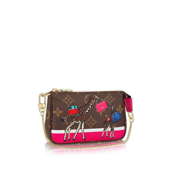 Whether it is clipped to another bag or carried independently, the Mini Pochette Accessoires is a playful addition to any wardrobe. The cute giraffes with their iconic Louis Vuitton bags bring a sense of playfulness to this functional pouch.