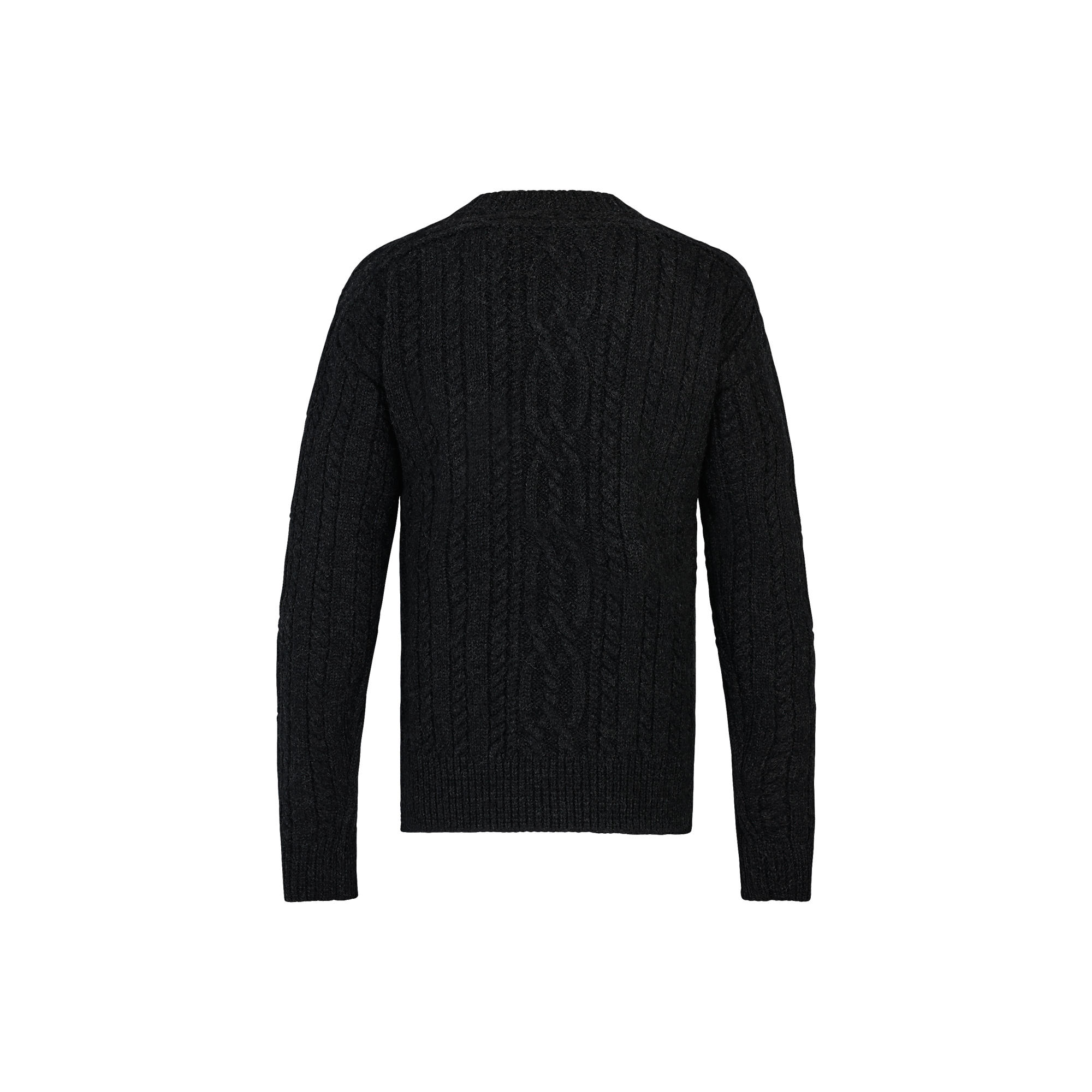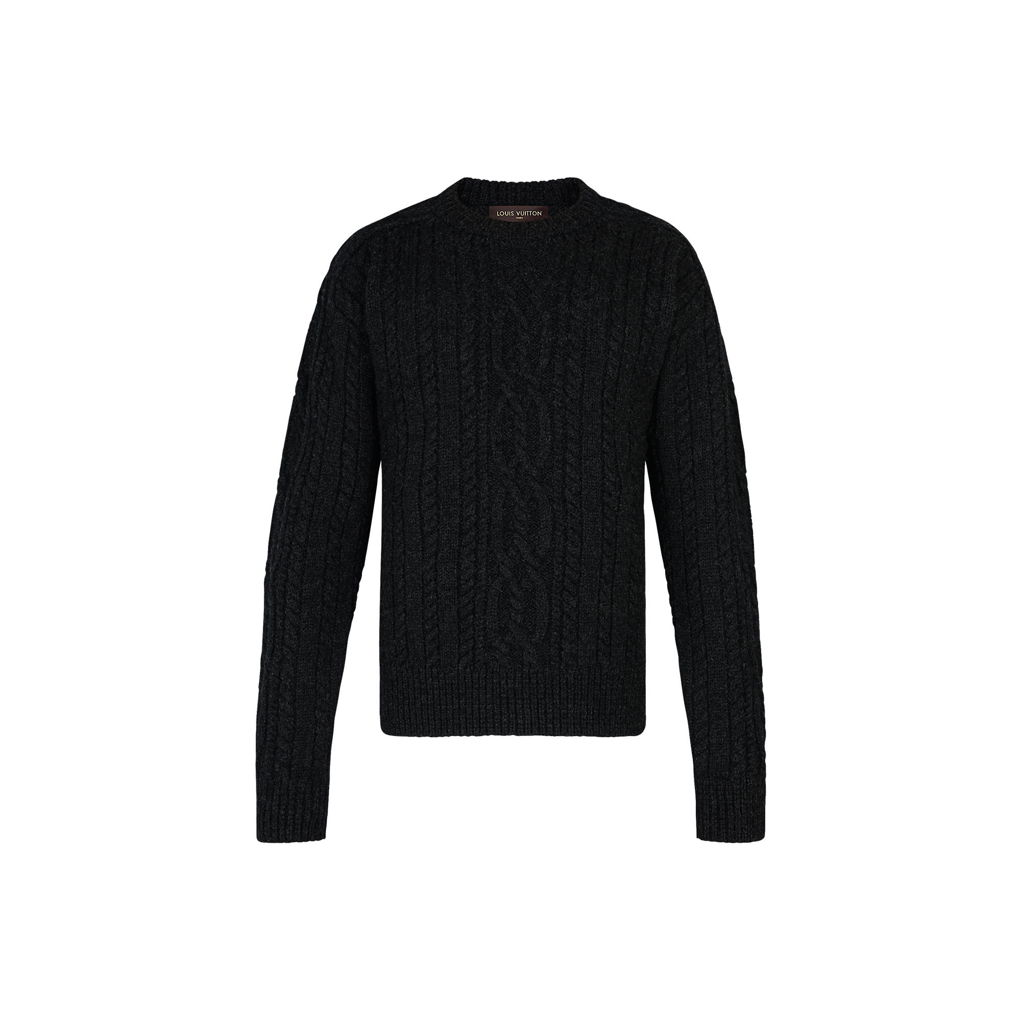 Combining elegance with the season’s emblematic relaxed feel, this warm crewneck sweater is embellished with a cable design. A black LV medallion at the lower front adds a discrete Louis Vuitton signature.