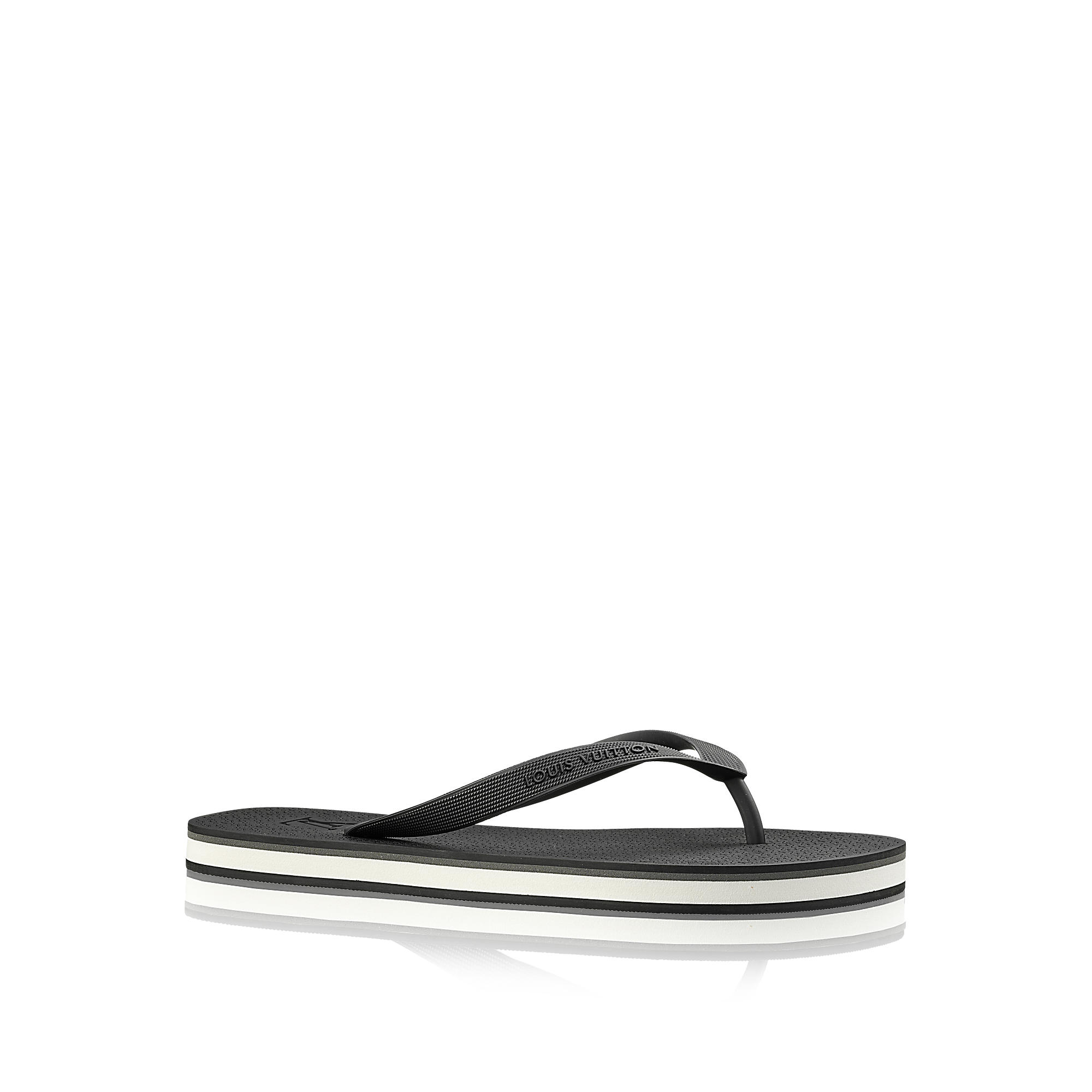 A summer essential, this waterproof rubber thong features the Louis Vuitton signature on the strap and a Monogram flower pattern on the insole.