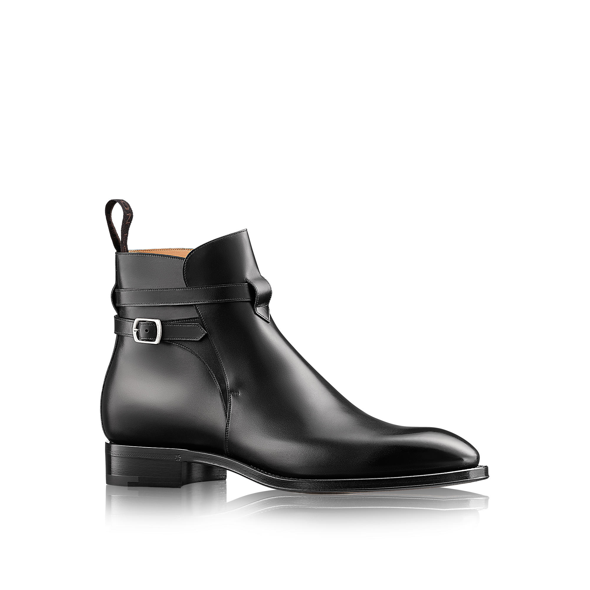 Jodhpur in calf leather with a ruthenium buckle and a leather hand-painted outsole.