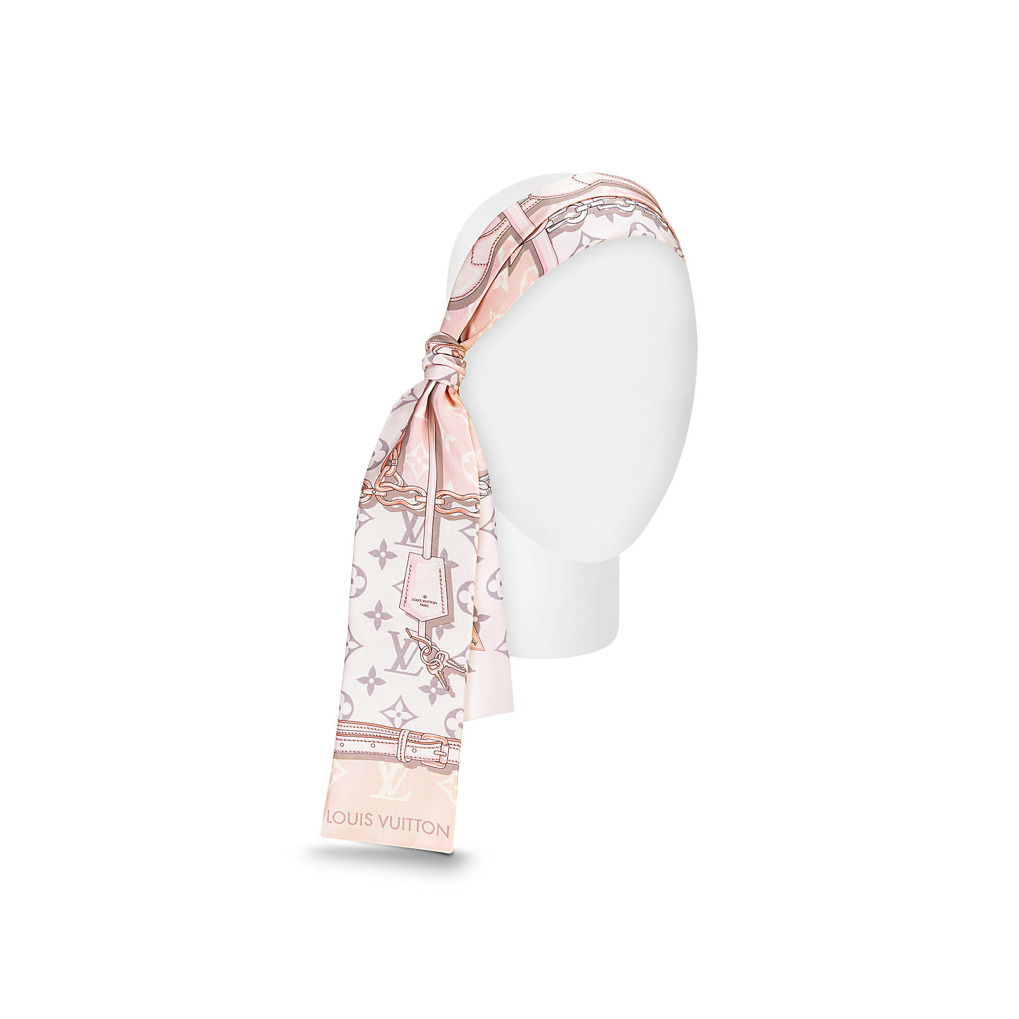 A perfect gift, this silk bandeau is printed with emblematic Louis Vuitton details – leather straps, metal chains and padlocks – on a background of the iconic Monogram pattern. This stylish accessory can be worn in many different ways.