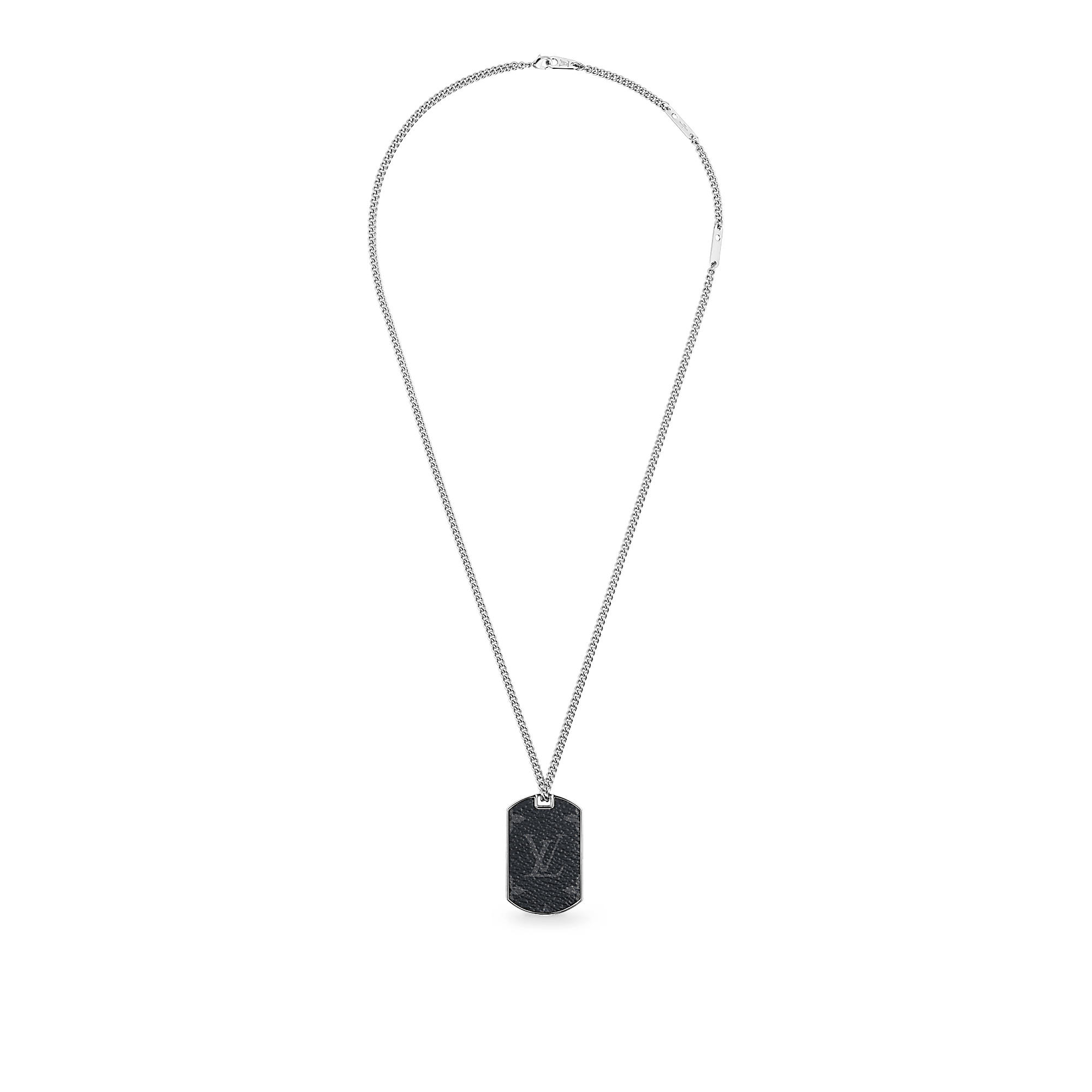With its iconic Monogram Eclipse canvas sheathed directly onto metal, this must-have necklace has a sophisticated masculine feel. Like an amulet, its plate hinges open to provide its wearer with a secret hiding place.