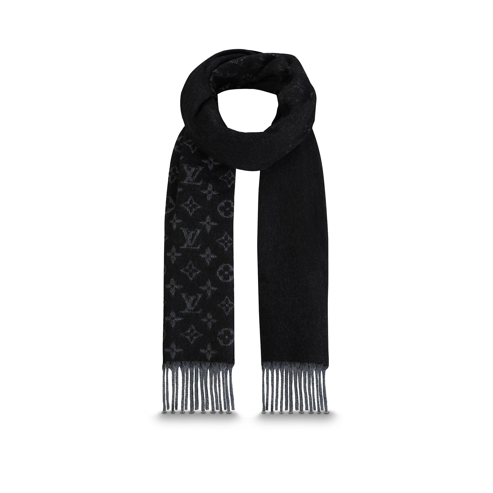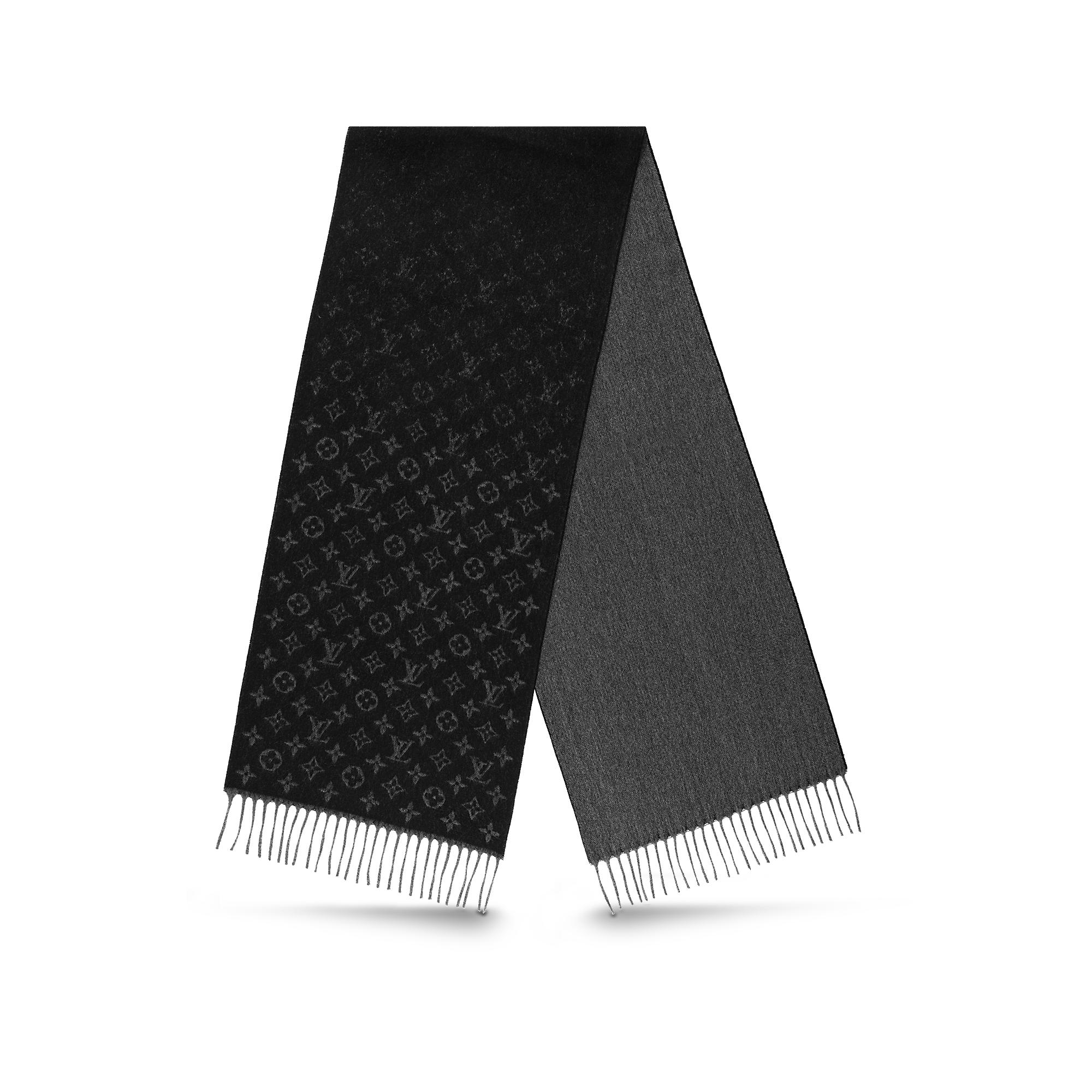 A sophisticated accessory for formal looks, this elegant scarf in a soft, luxurious blend of cashmere and wool is woven with a graduated Monogram pattern.