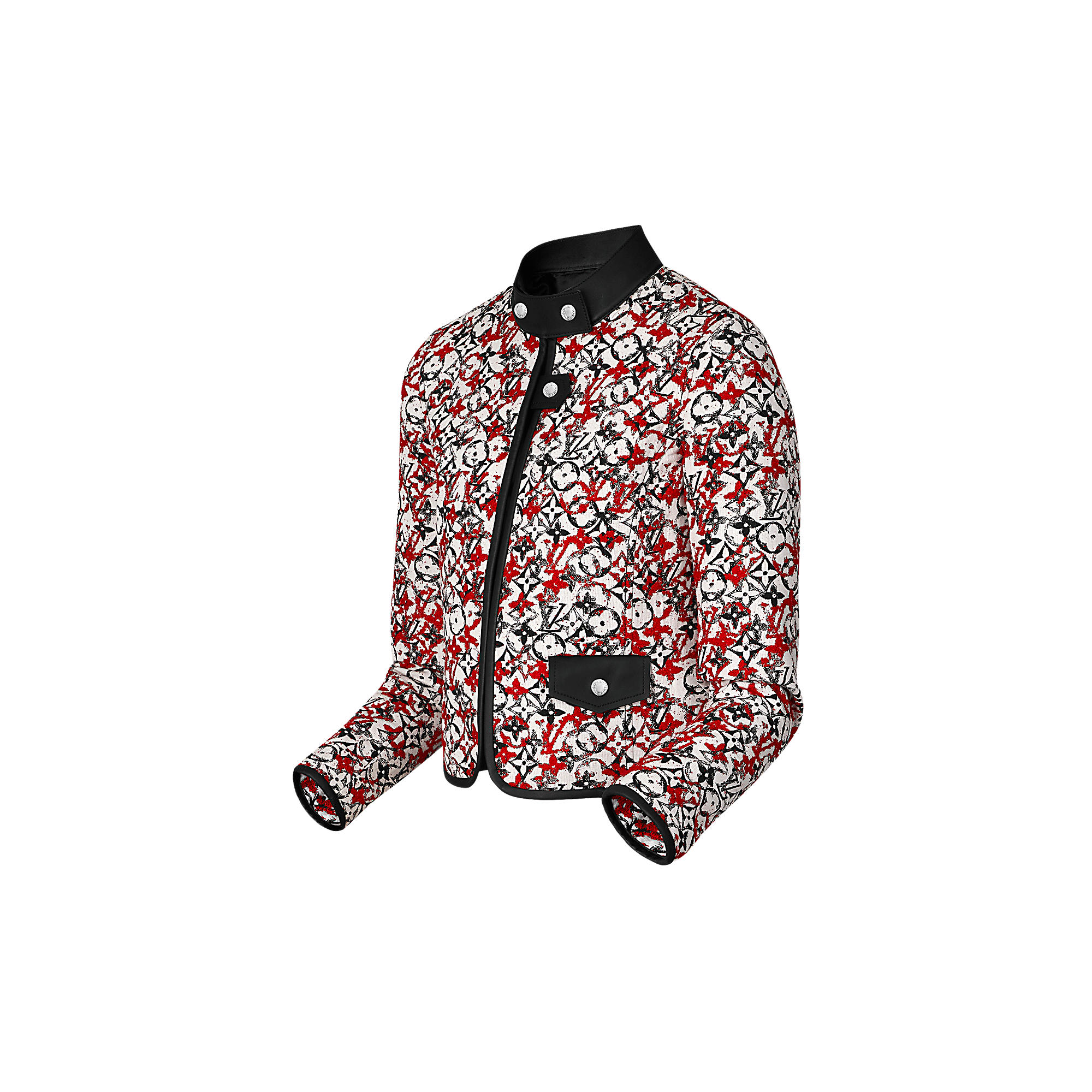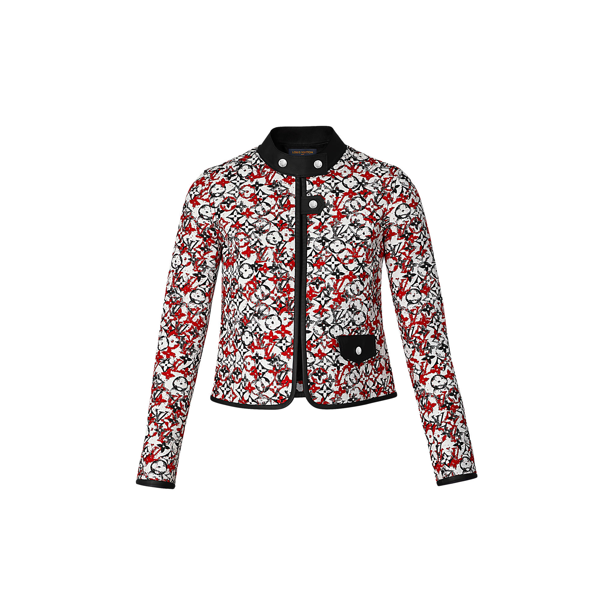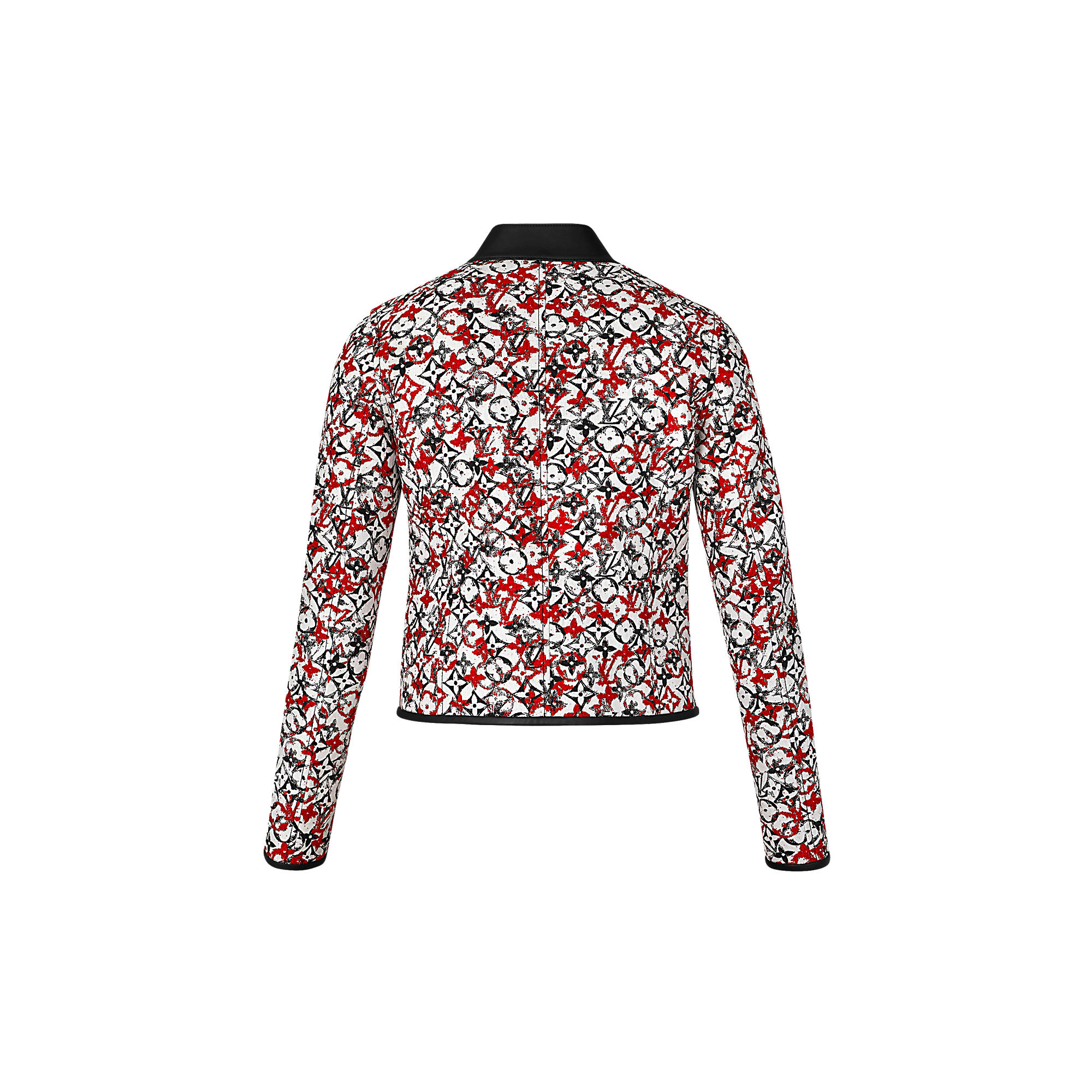 Leather trim on the edges of this short suit jacket highlight the Maison’s expertise in leather goods. While Monogram jacquard fabric with its bouclé texture adds signature touch.