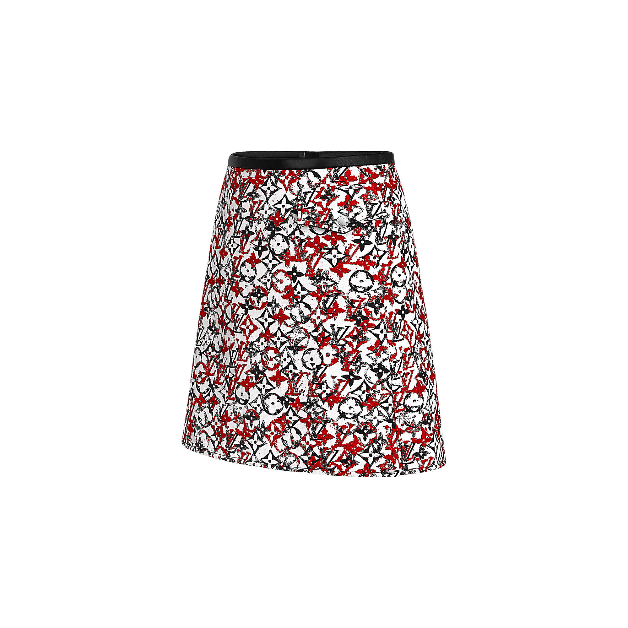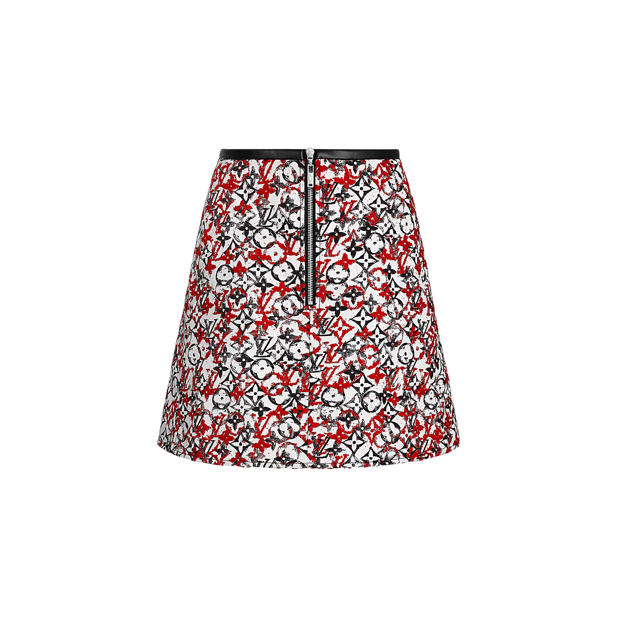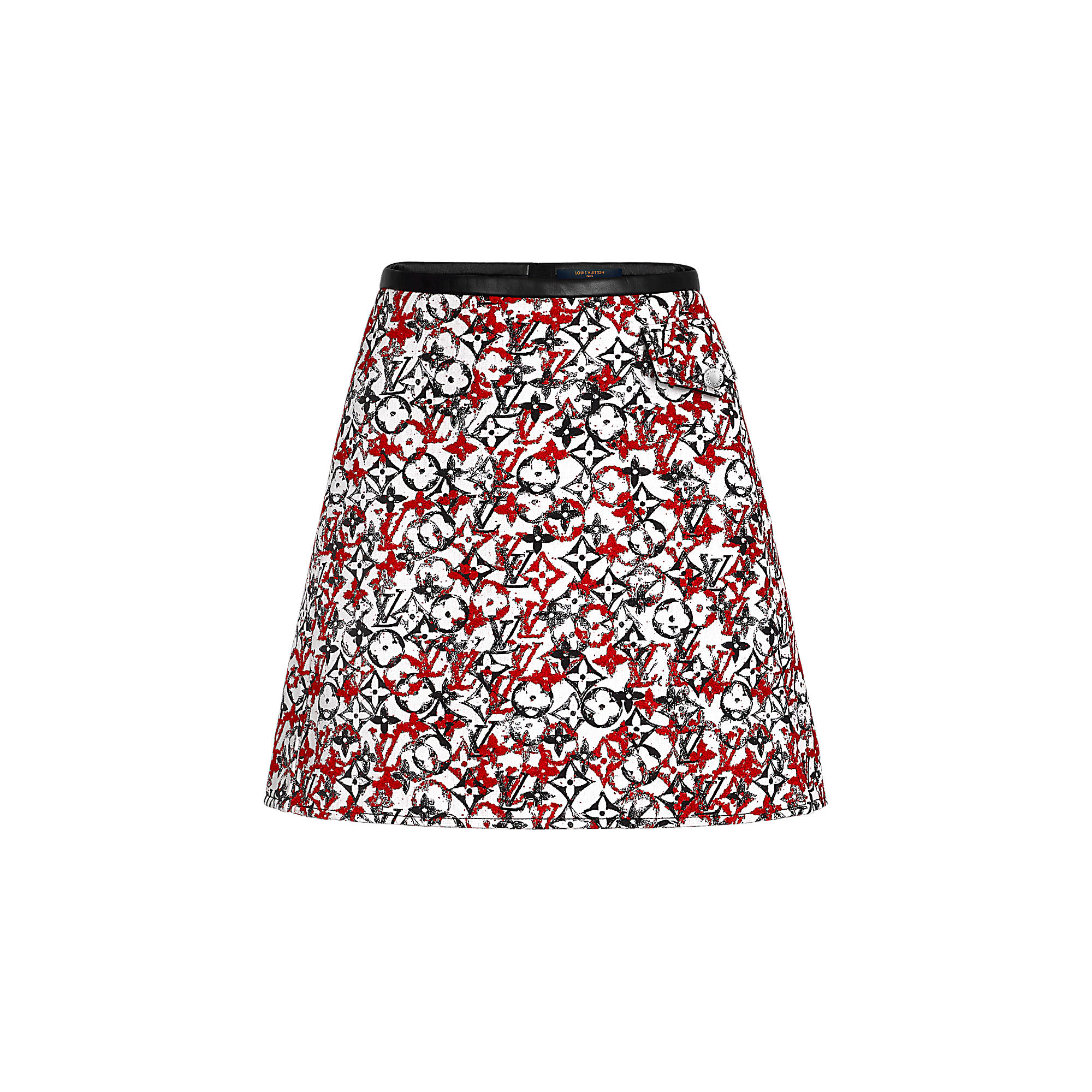 This A-line skirt is adorned with the flap pocket that is a recurring detail this season. Finished with a leather waistband, it is tailored from jacquard fabric with a textured Monogram motif.