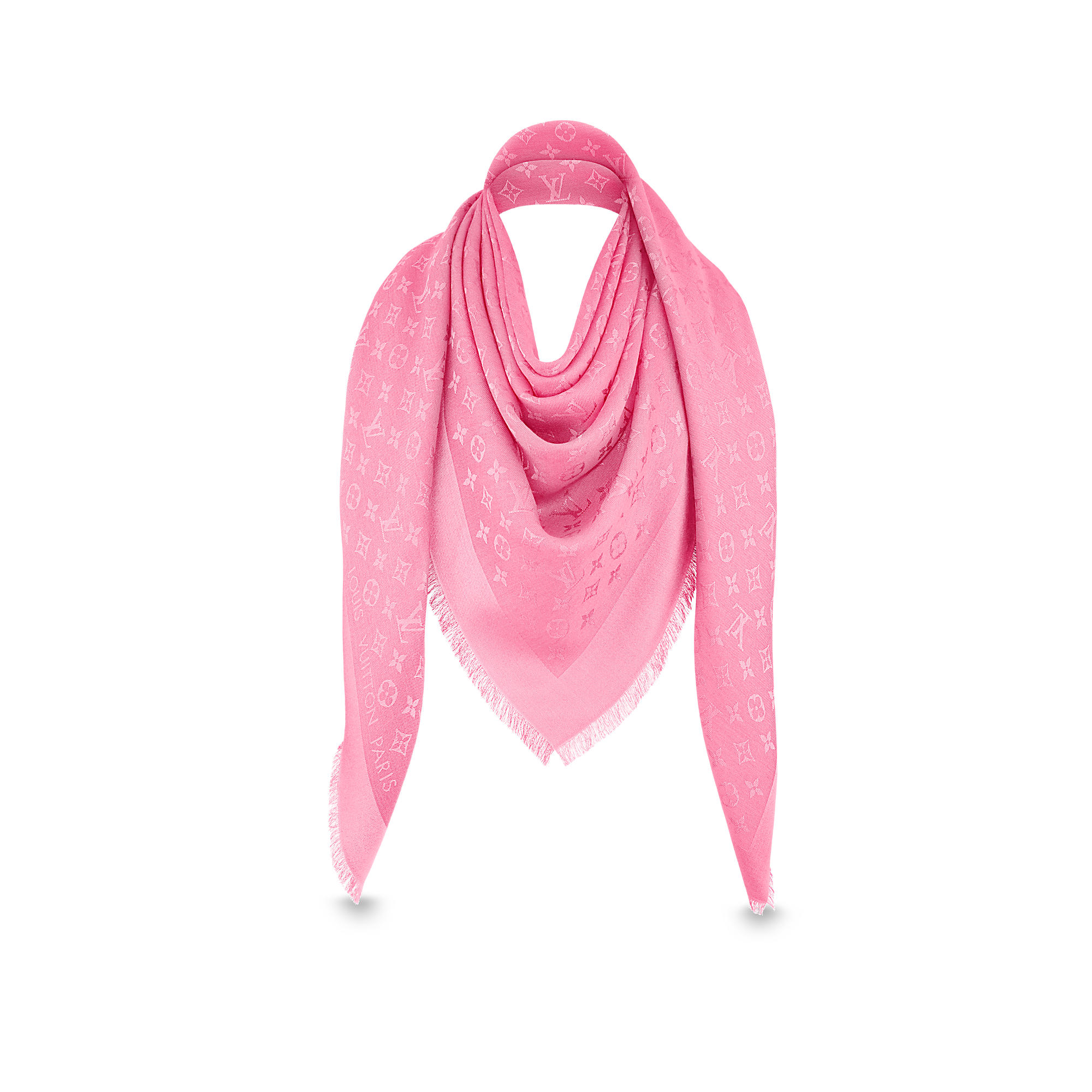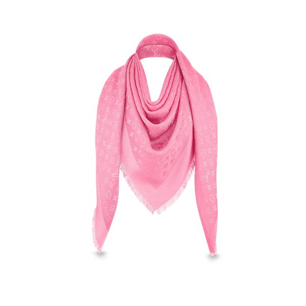 Soft and warm due to its mixture of silk and wool this shawl reproduces the Monogram pattern and the Louis Vuitton Paris signature in weaved jacquard. Its style is classical and timeless.