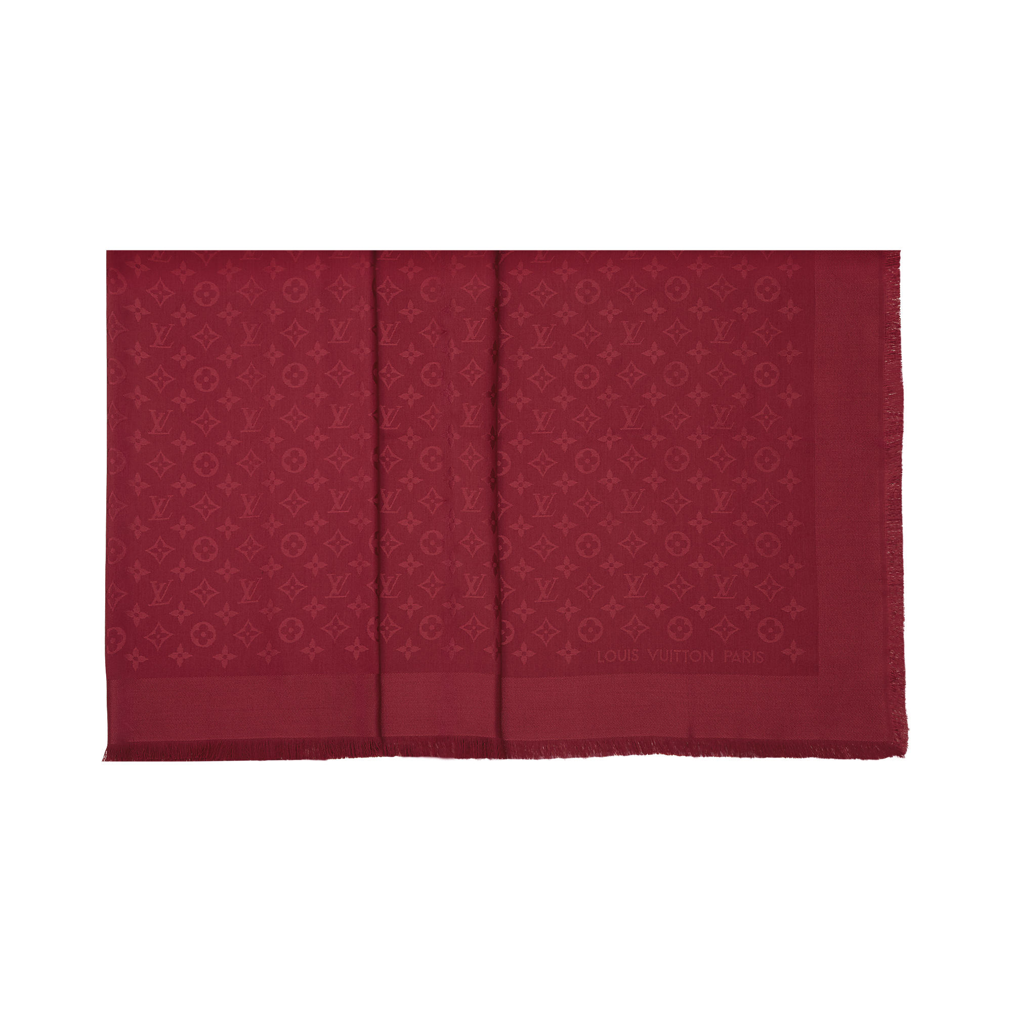 Soft and warm due to its mixture of silk and wool this shawl reproduces the Monogram pattern and the Louis Vuitton Paris signature in weaved jacquard. Its style is classical and timeless.