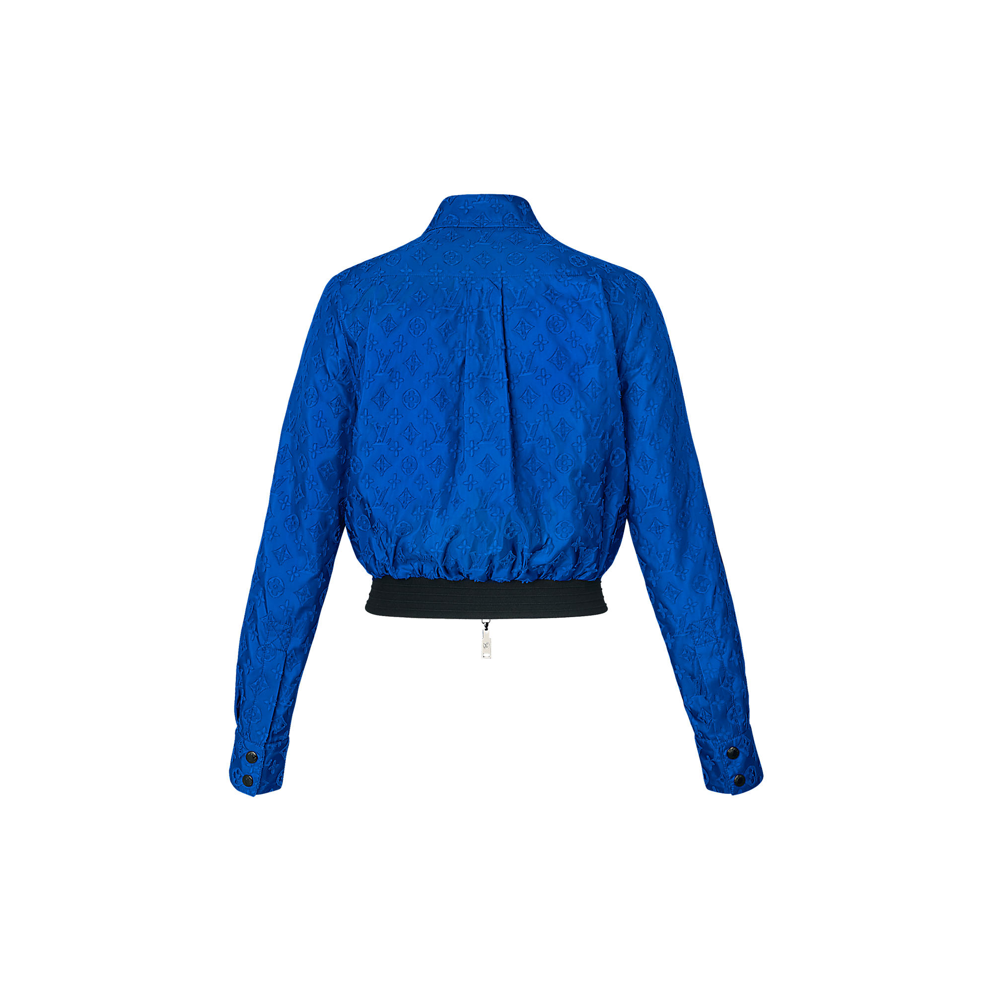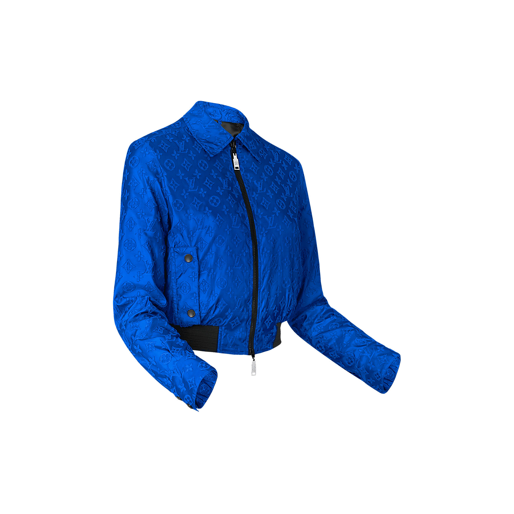 The season’s new fabric, a technical fil coupé, gives texture to this short bomber jacket’s tone-on-tone Monogram. A shirt collar provides a sophisticated touch.