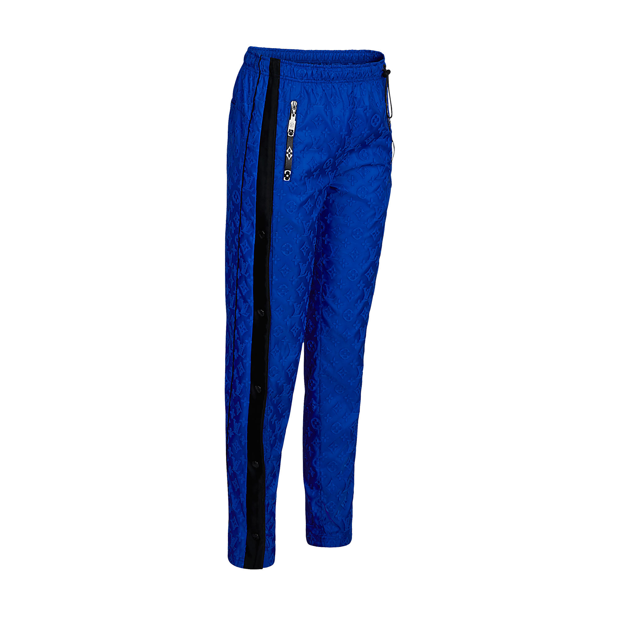 Drawing from the tracksuit style, these pants feature snap buttons on the right leg, underlining the sportswear feel. A Monogram motif in delicate fil coupé creates a subtle textured effect.