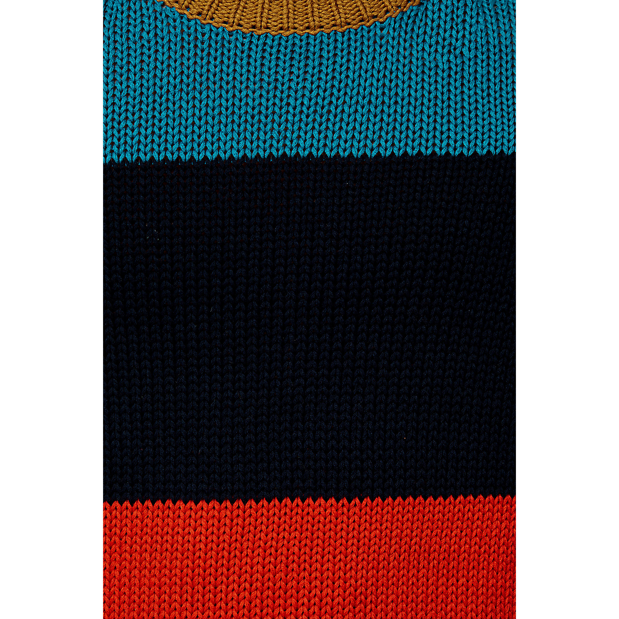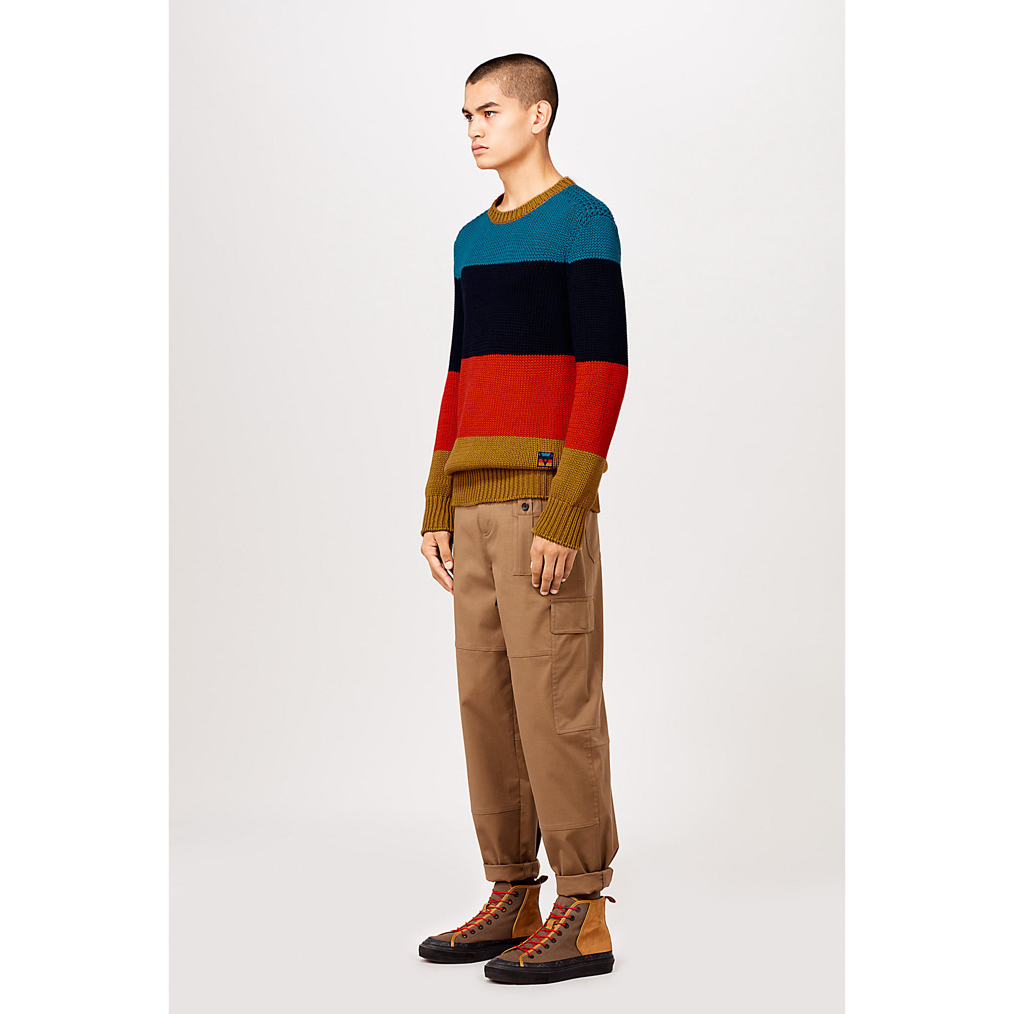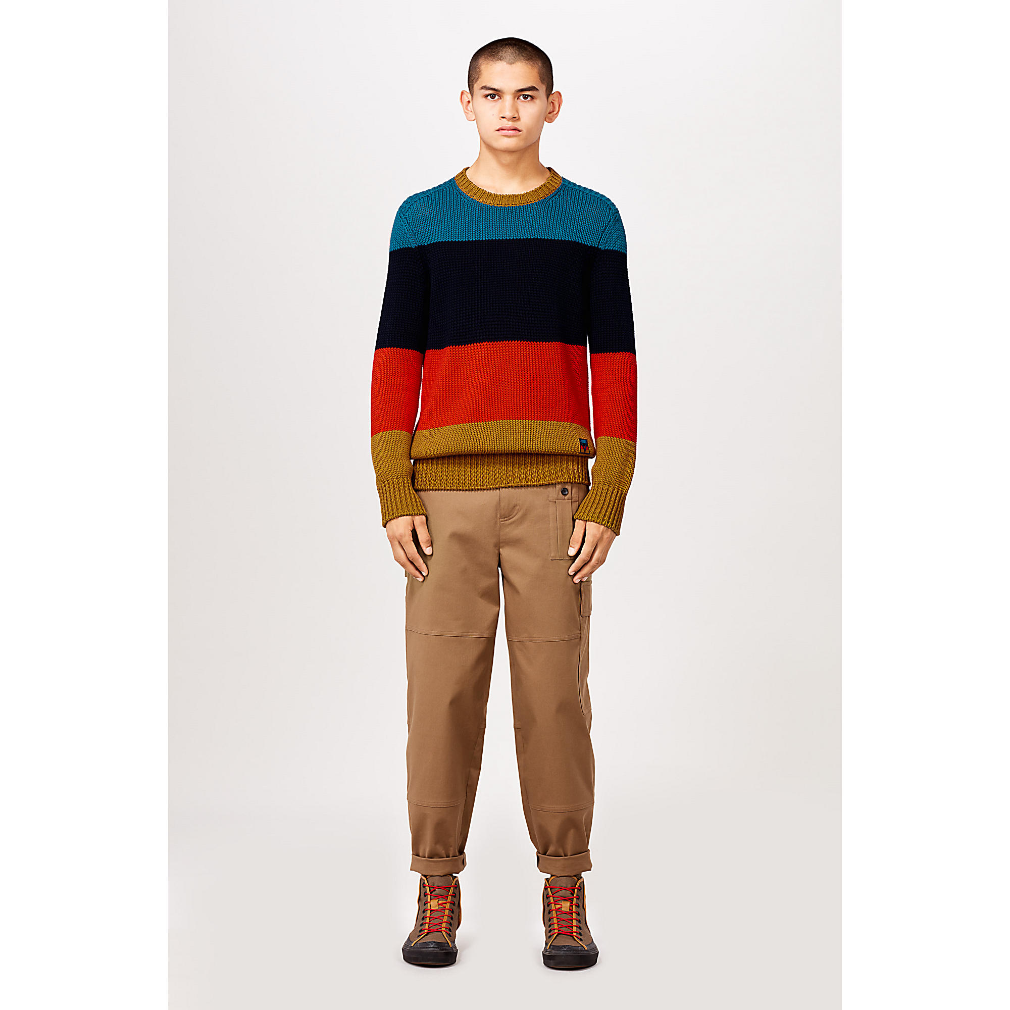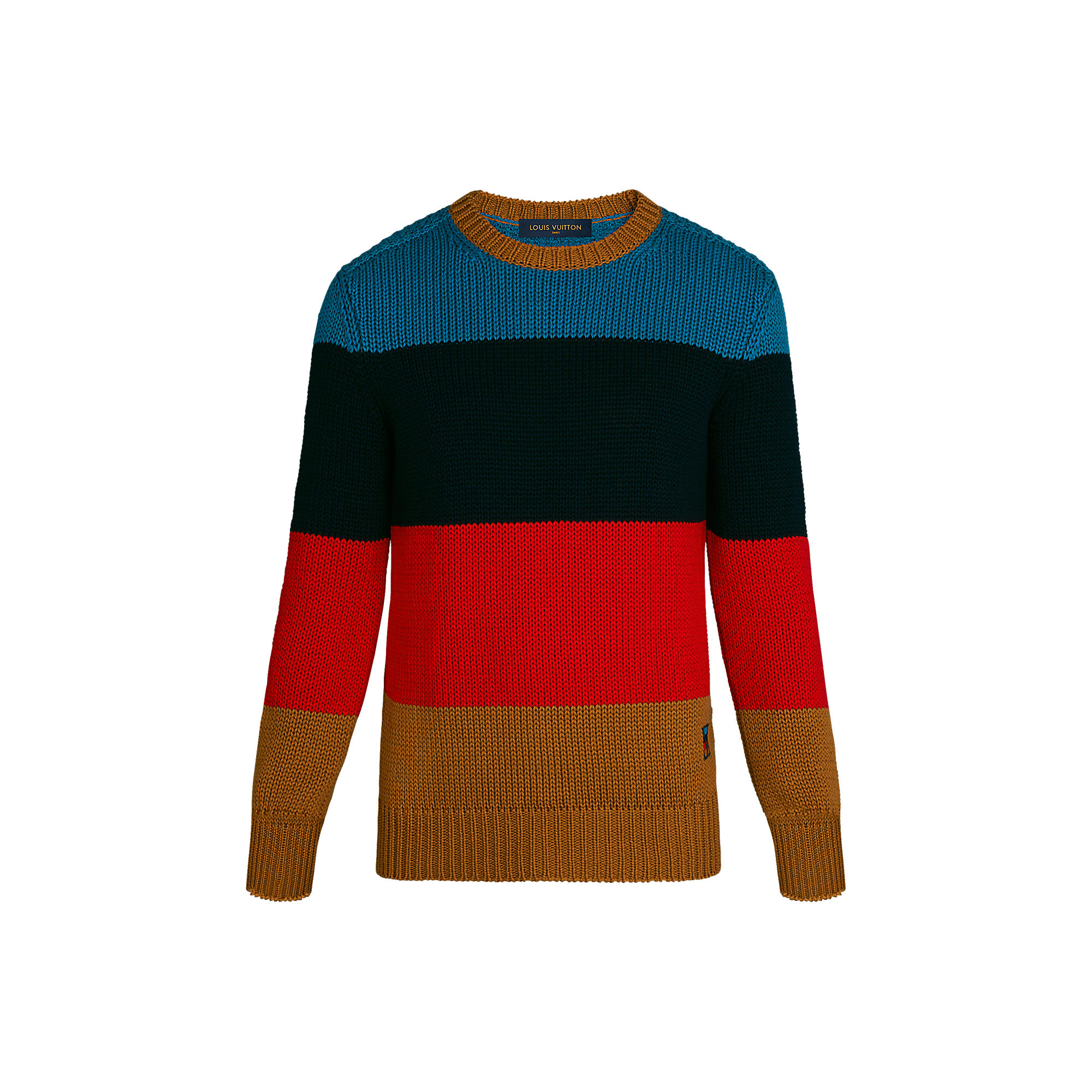 Showcasing the season’s colourblock theme, this heavyweight cotton knit is a warm trans-seasonal piece.