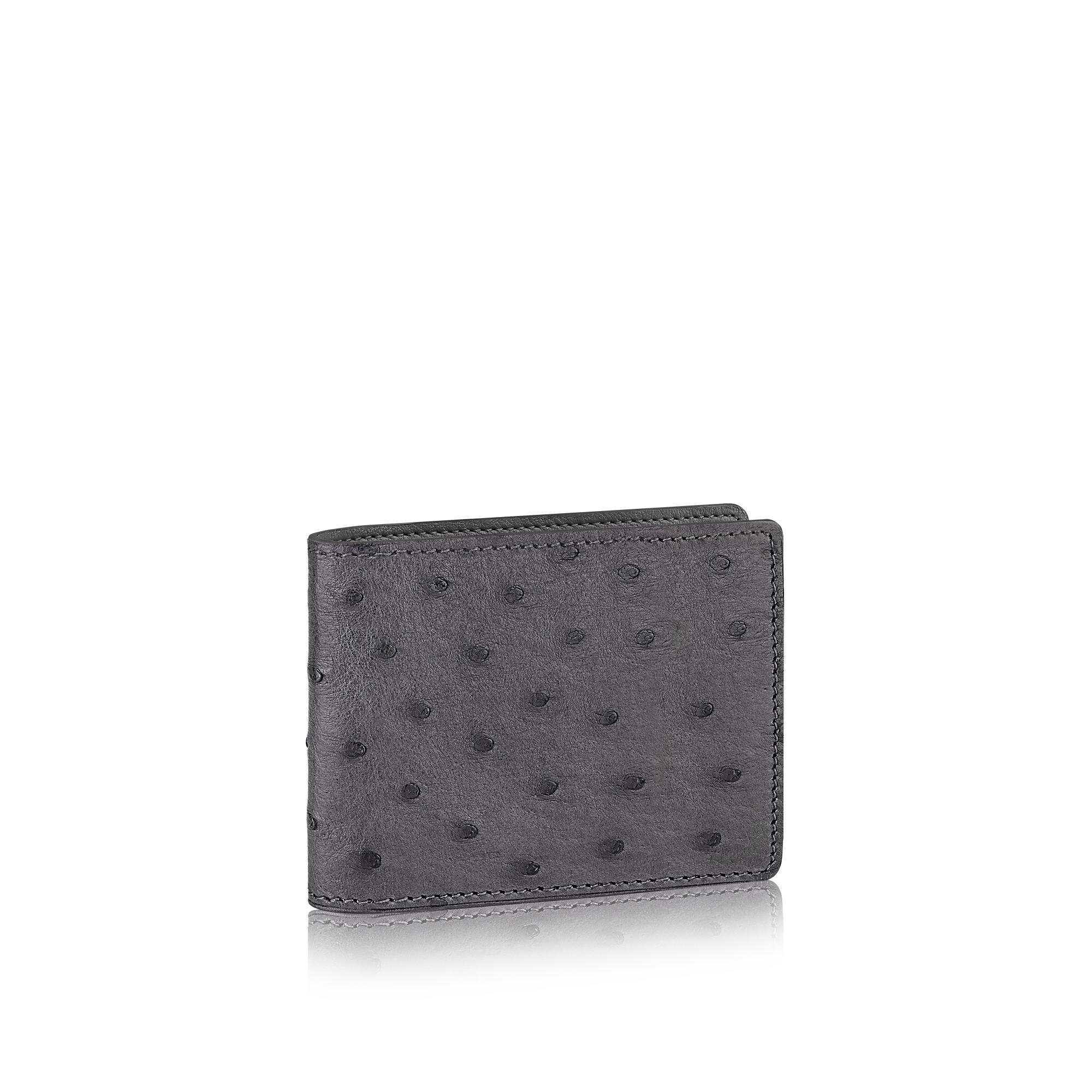 Crafted in fabulously ostrich leather, the Multiple Wallet is a study in refined masculine sophistication. It lives up to its name, offering numerous slots for cards, receipts and banknotes. Its compact shape fits easily into pockets.