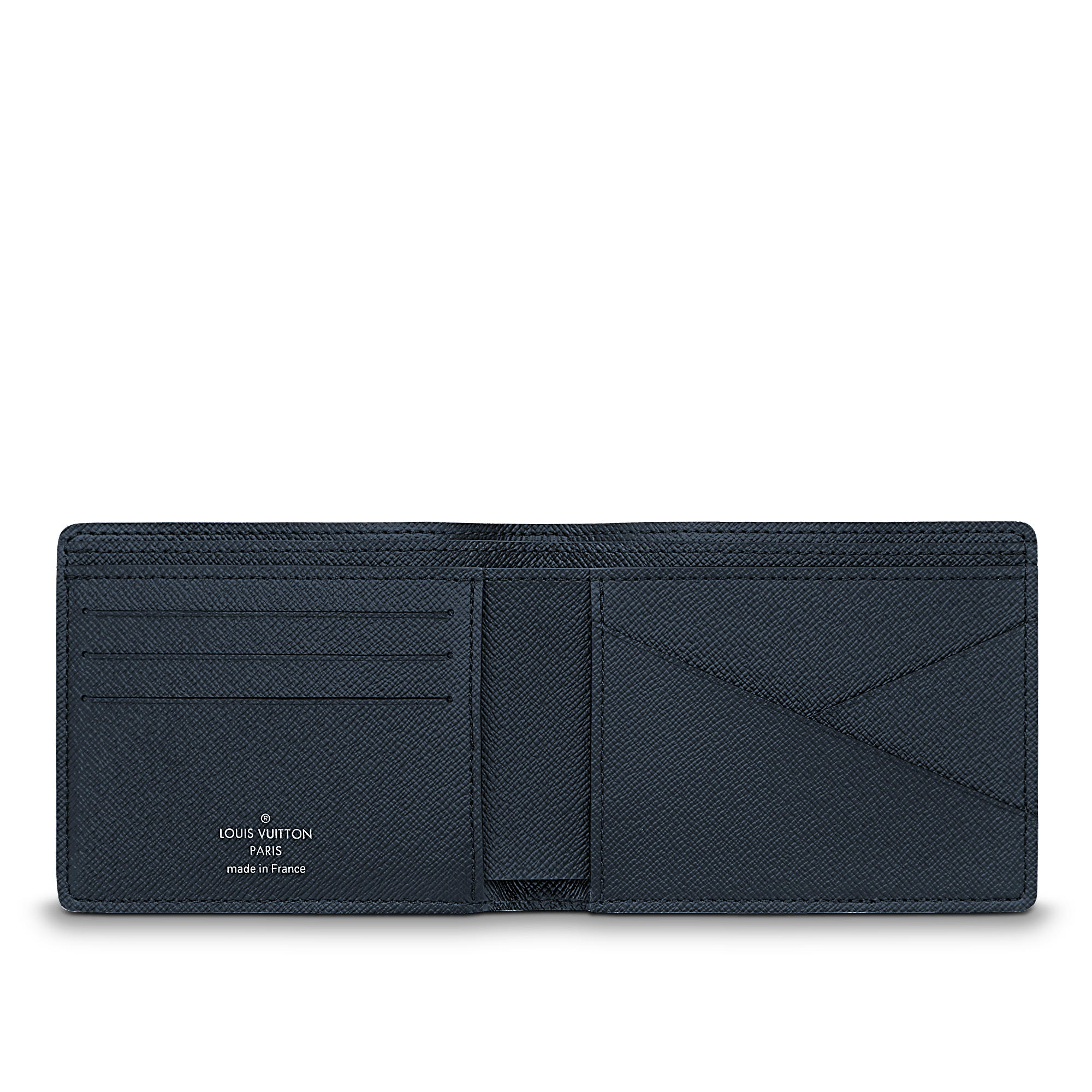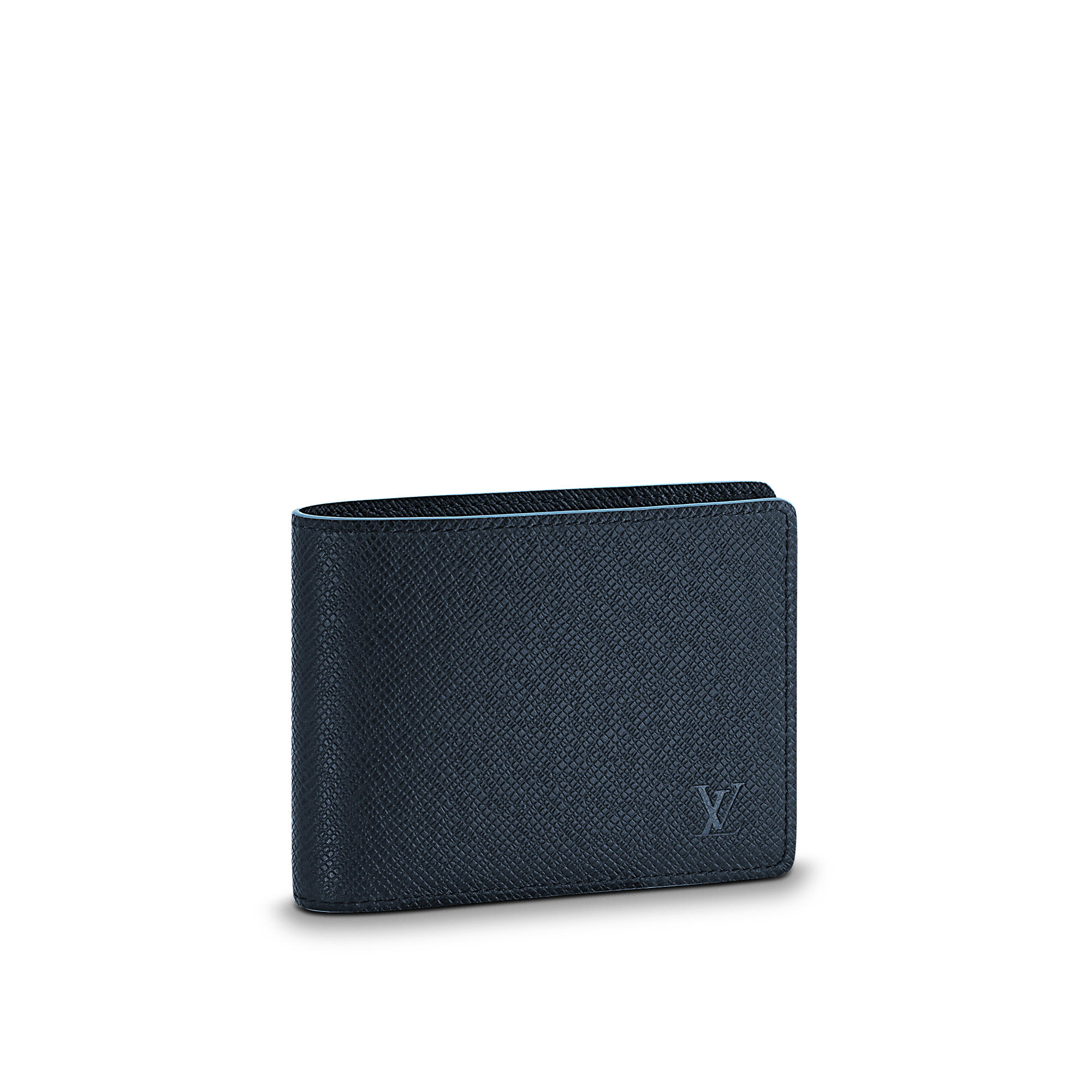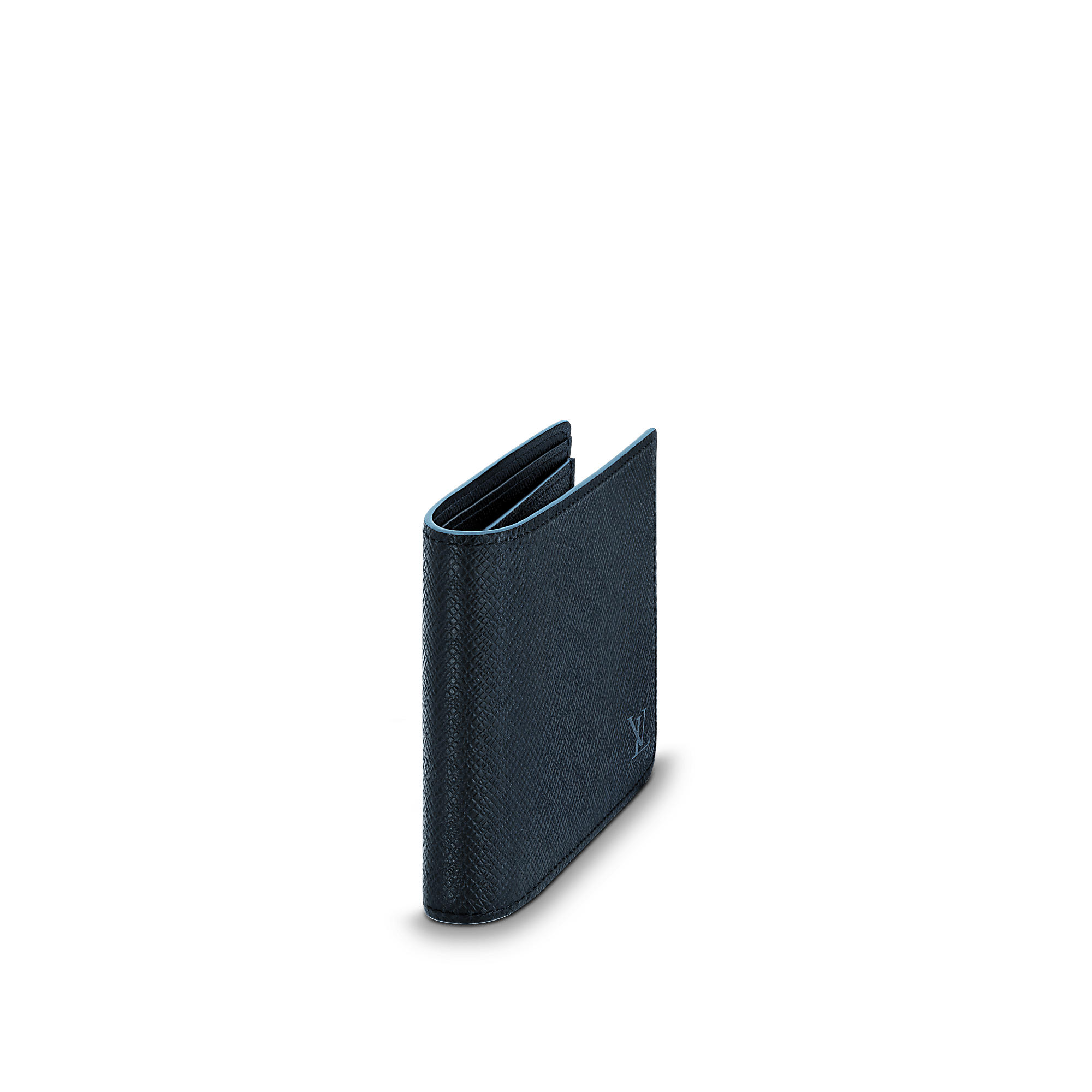 Louis Vuitton’s Multiple wallet holds credit cards, bills and receipts in an extremely compact format. The daring twist between Navy Blue and Light Blue will highlight any silhouette.
