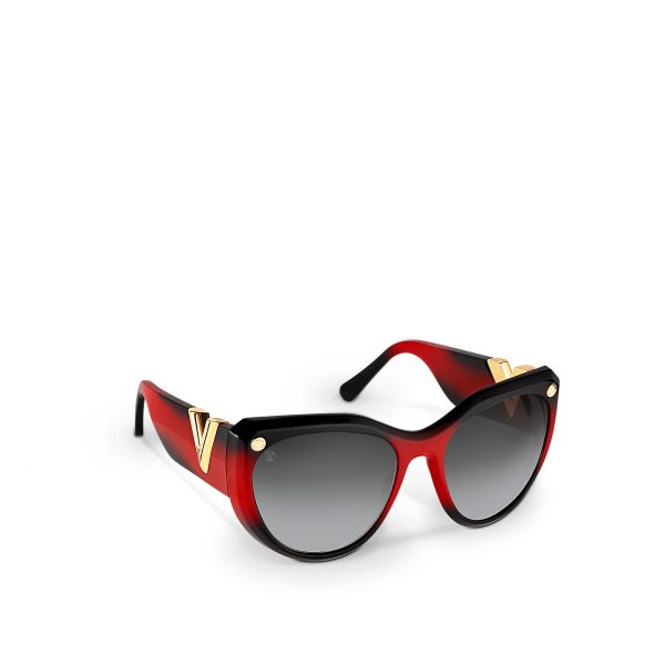 A must-have feminine style with a wow effect thanks to the striking cat eye shape and intricate facet work on the front. The large temples display an oversize Essential V motif – a tribute to Nicolas Ghesquière’s first show for Louis Vuitton. Iconic studs evoke the Maison’s historic trunks.