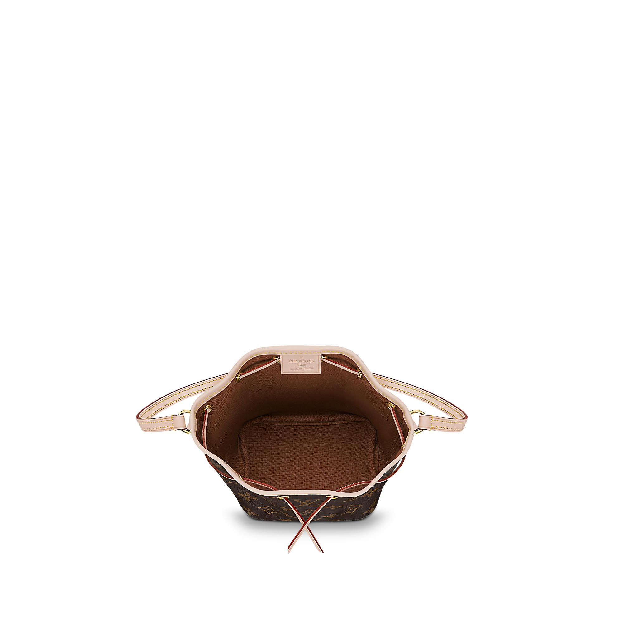 The ultra-feminine Nano Noé in iconic Monogram canvas is the ideal way to carry your daily essentials. This perfect miniature version of the original Noé bag, down to the stitching, is a very light bag that easily fits your smartphone, credit cards and keys.