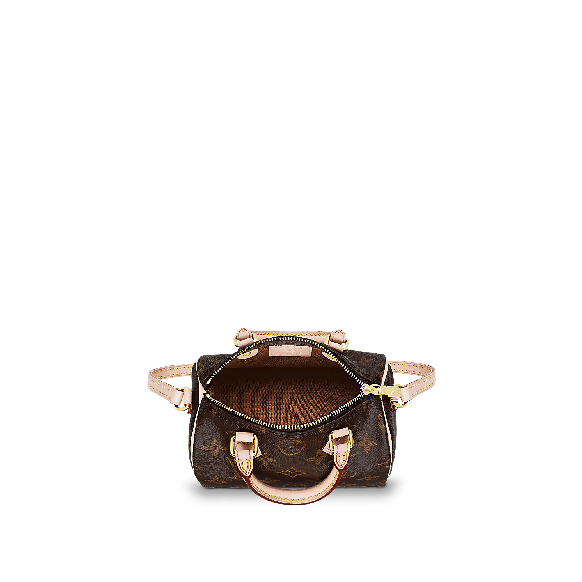 The ultra-feminine Nano Speedy in iconic Monogram canvas is the ideal way to carry your daily essentials. This perfect miniature version of the original Speedy bag, down to the stitching, is a very light bag that easily fits your smartphone, credit cards and keys.