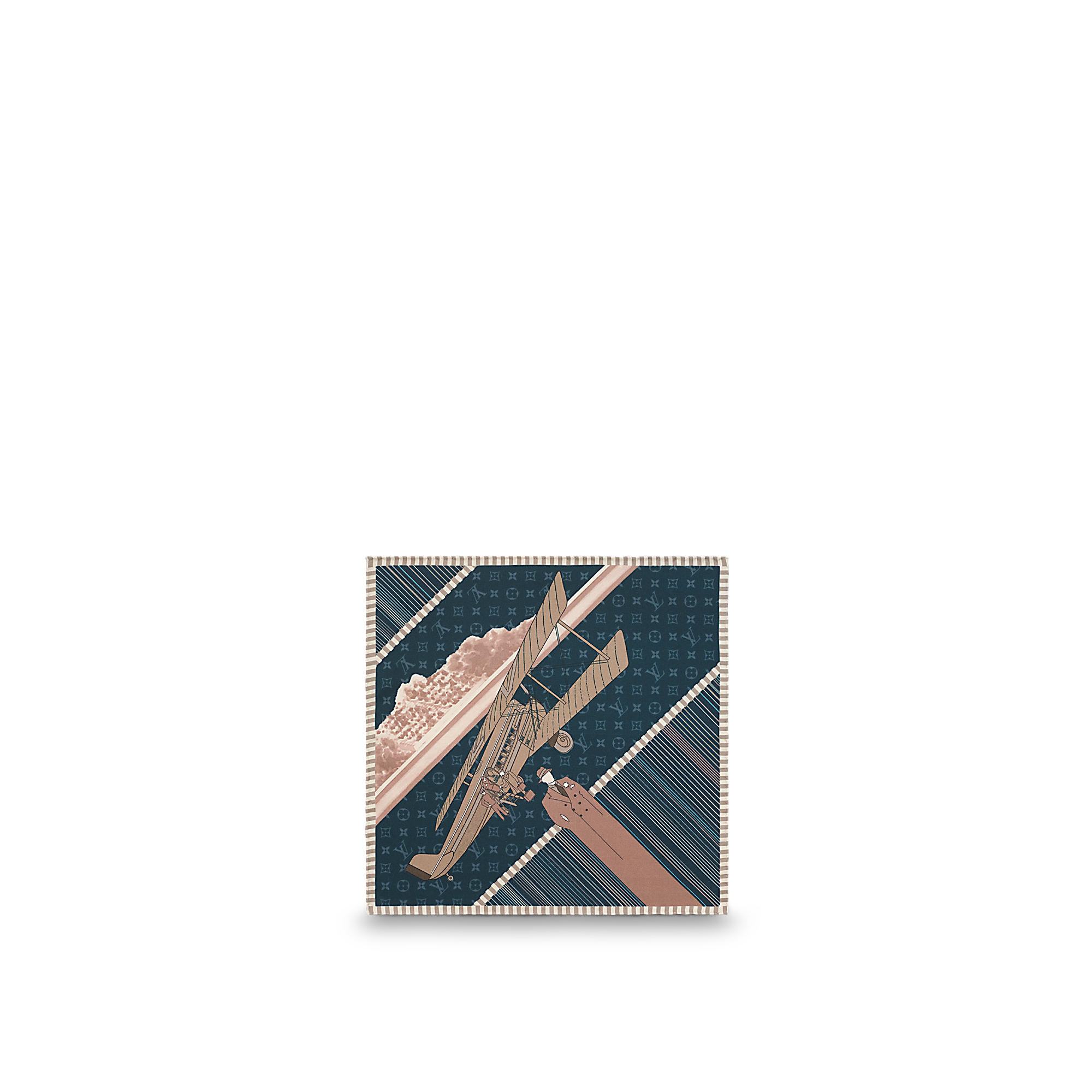 This elegant silk pocket square was inspired by Louis Vuitton’s Fall/Winter 2017 men’s show, reintepreting travel motifs from the archives. Soft, vintage colours add to the poetic quality of the design.