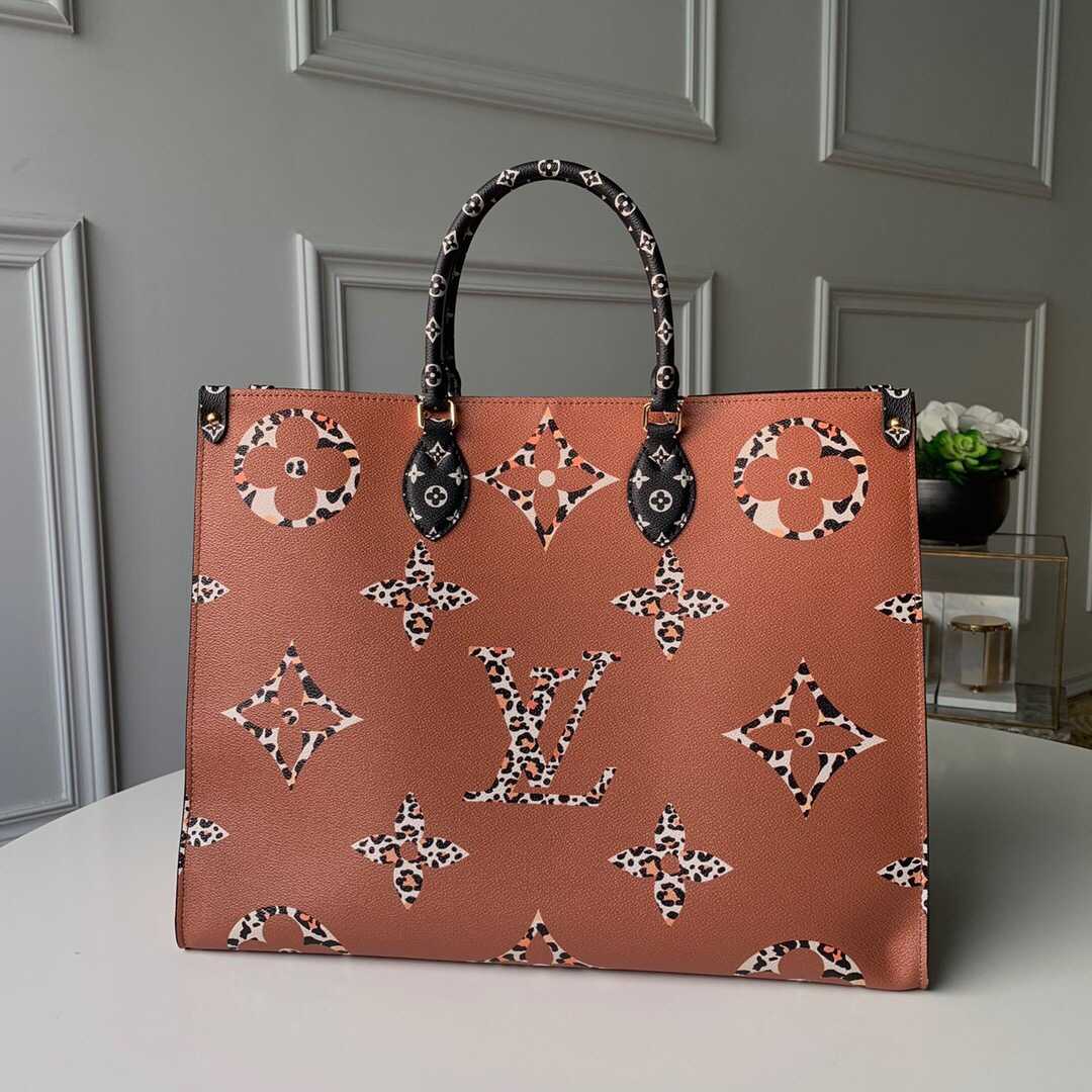 Leopard and zebra prints form a Monogram pattern of various sizes, giving the Onthego handbag a new look. Ample capacity, detachable shoulder straps and a top handle make it an everyday companion.