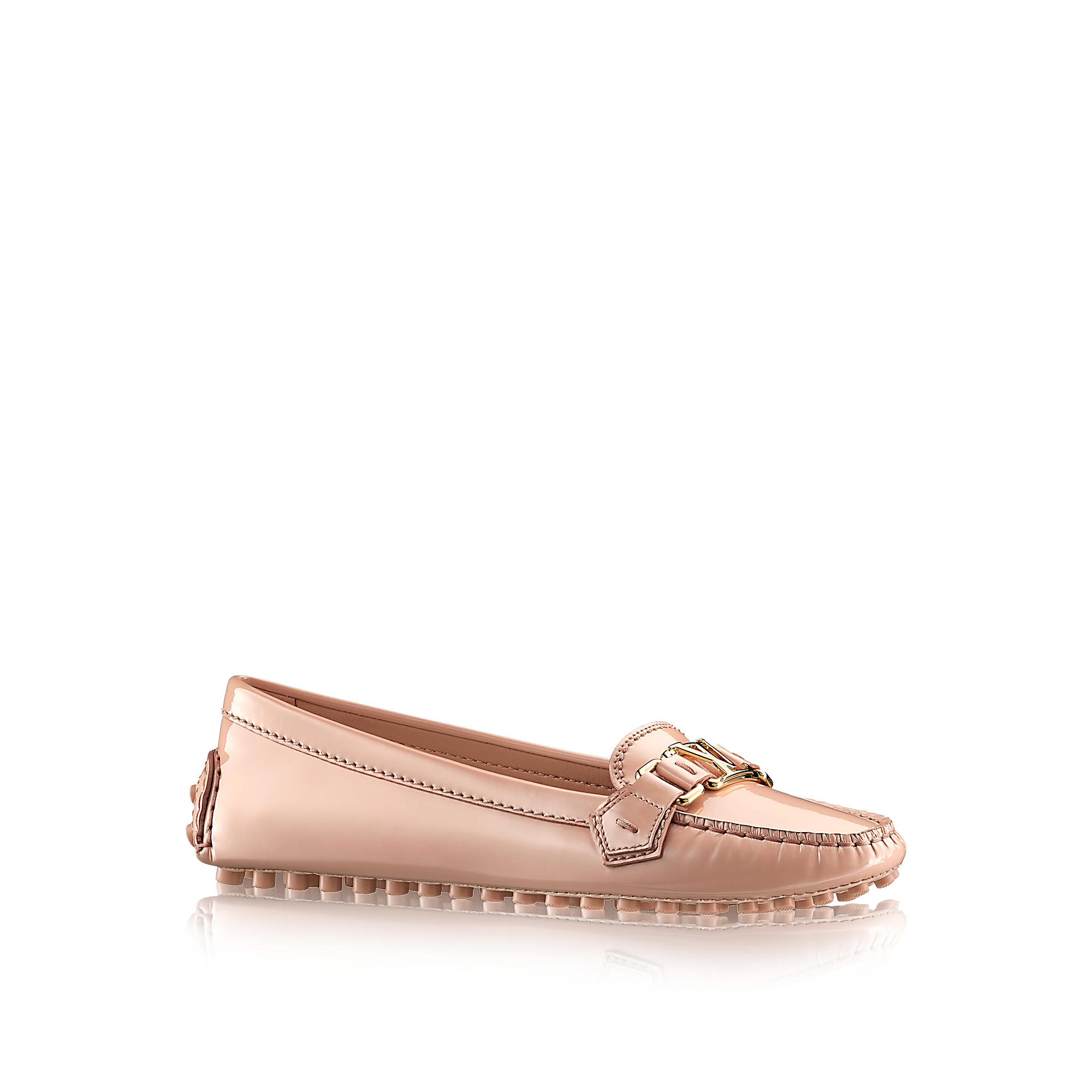 This timeless loafer in patent calf leather is embellished with a golden LV initials accessory. It sports an extremely supple rubber nub sole.