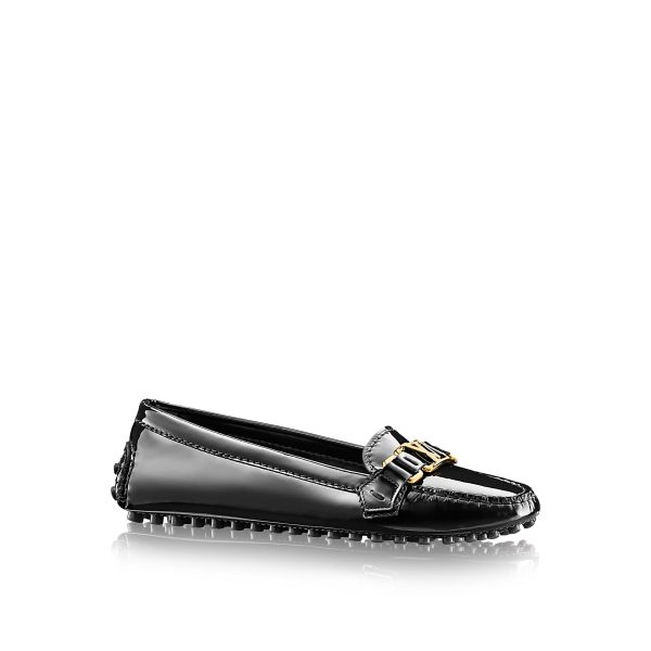 This timeless loafer in patent calf leather is embellished with a golden LV initials accessory. It sports an extremely supple rubber nub sole.