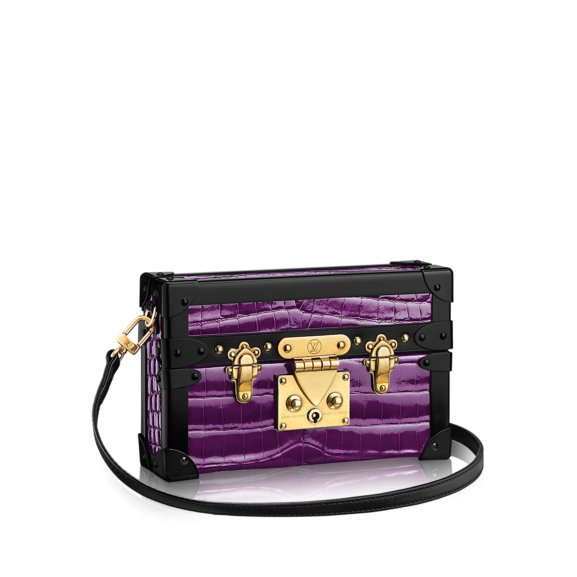 The Petite Malle in crocodilian skin beautifully mixes Louis Vuitton craftsmanship with a bold, stylish statement. Reflecting the Maison?s heritage in trunk making, this little jewel is timeless and perfect for day to night chic. The elegance of the Crocodilian skin leather makes it even smarter.