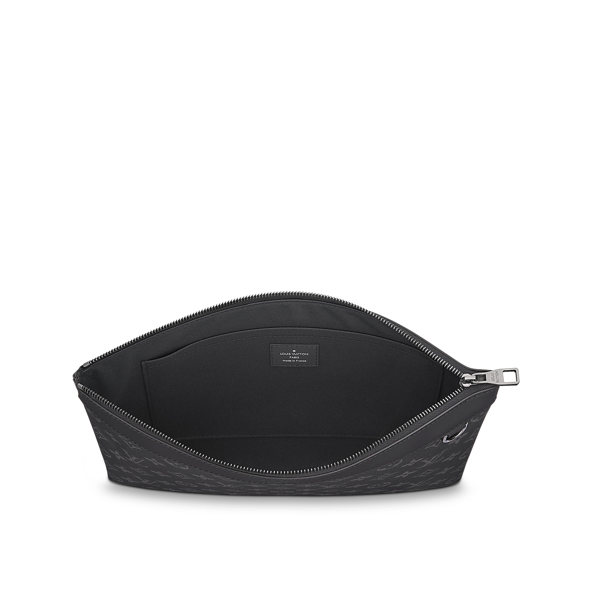 This clutch in supple Monogram Eclipse canvas is the perfect size for transporting documents and other personal belongings. Elegant and contemporary, it can be hand-carried or used as a bag in a bag.