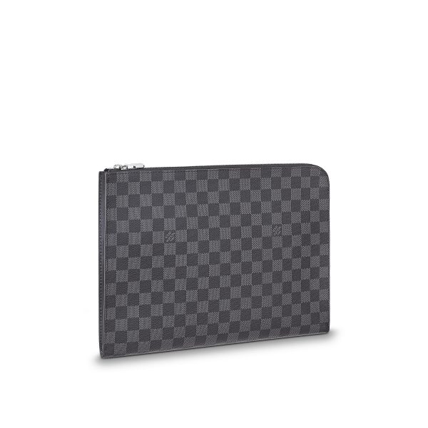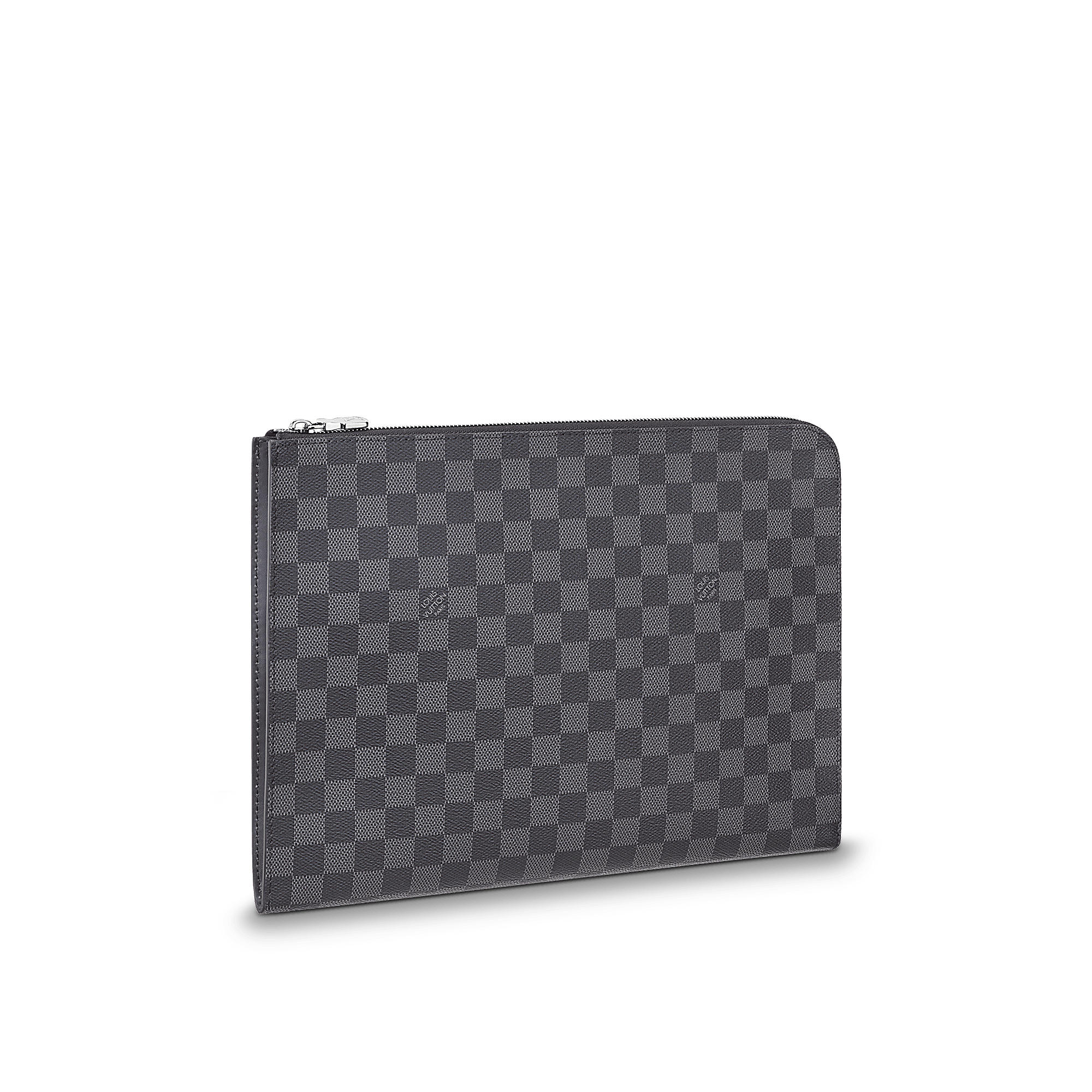 Louis Vuitton’s Pochette Jour is large enough to hold a laptop easily. This new version in Damier Graphite offers more capacity and a very large opening. This supple and versatile design can be carried as a clutch or a document portfolio, or slipped inside a larger bag.