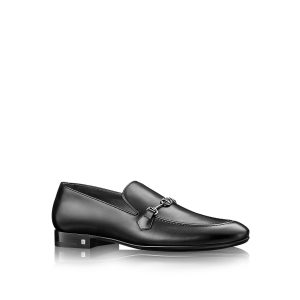 This sporty driving shoe in velvety suede calf leather is distinguished by its elegant antique gold accessory, inspired by the S-locks used on Louis Vuitton trunks.