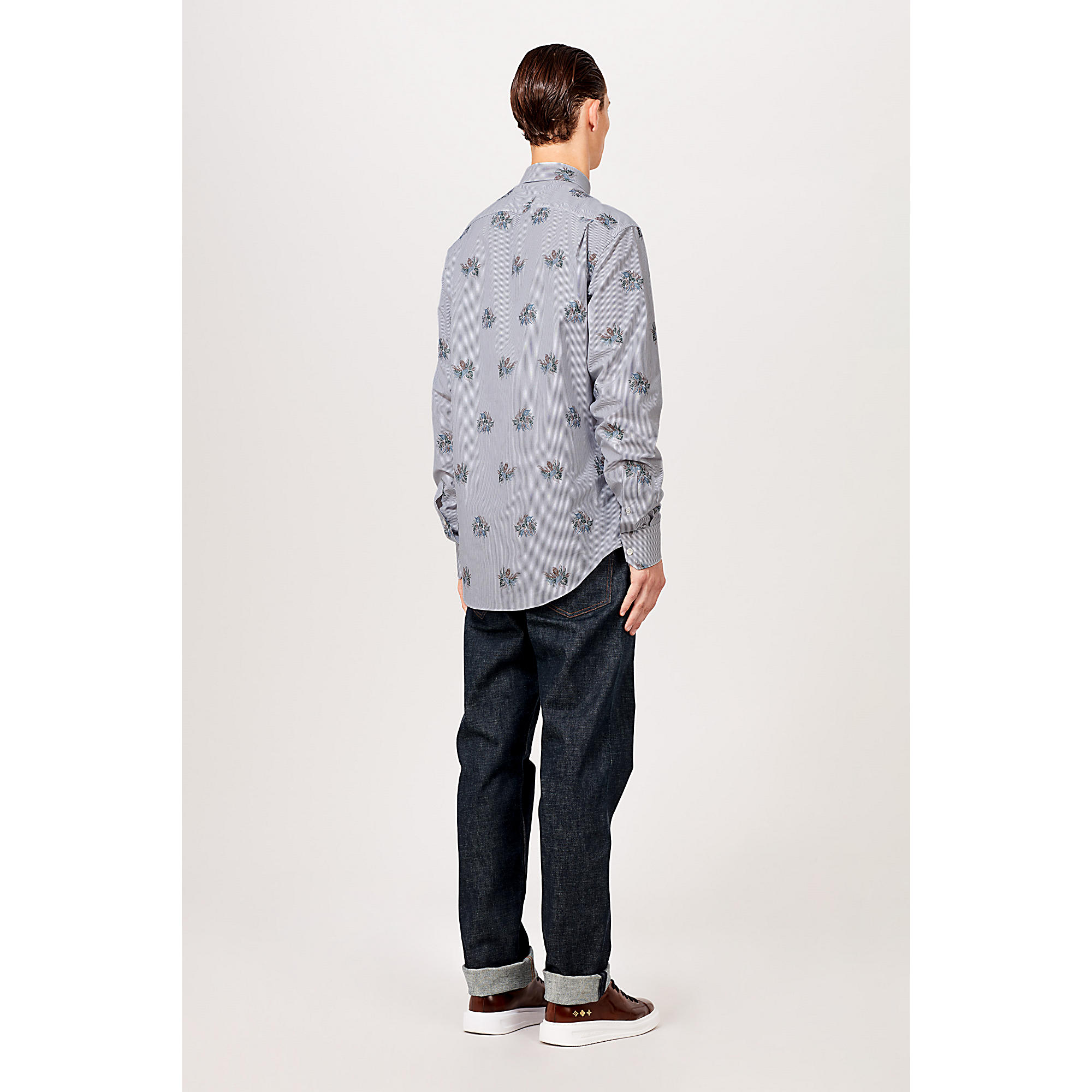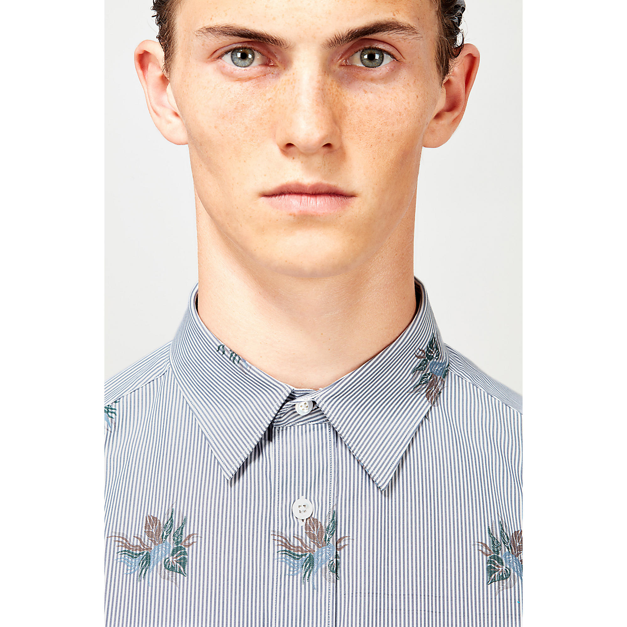 For this elegant piece, the season’s iconic blossom motif is applied over stripes, in all-over fil coupé jacquard.