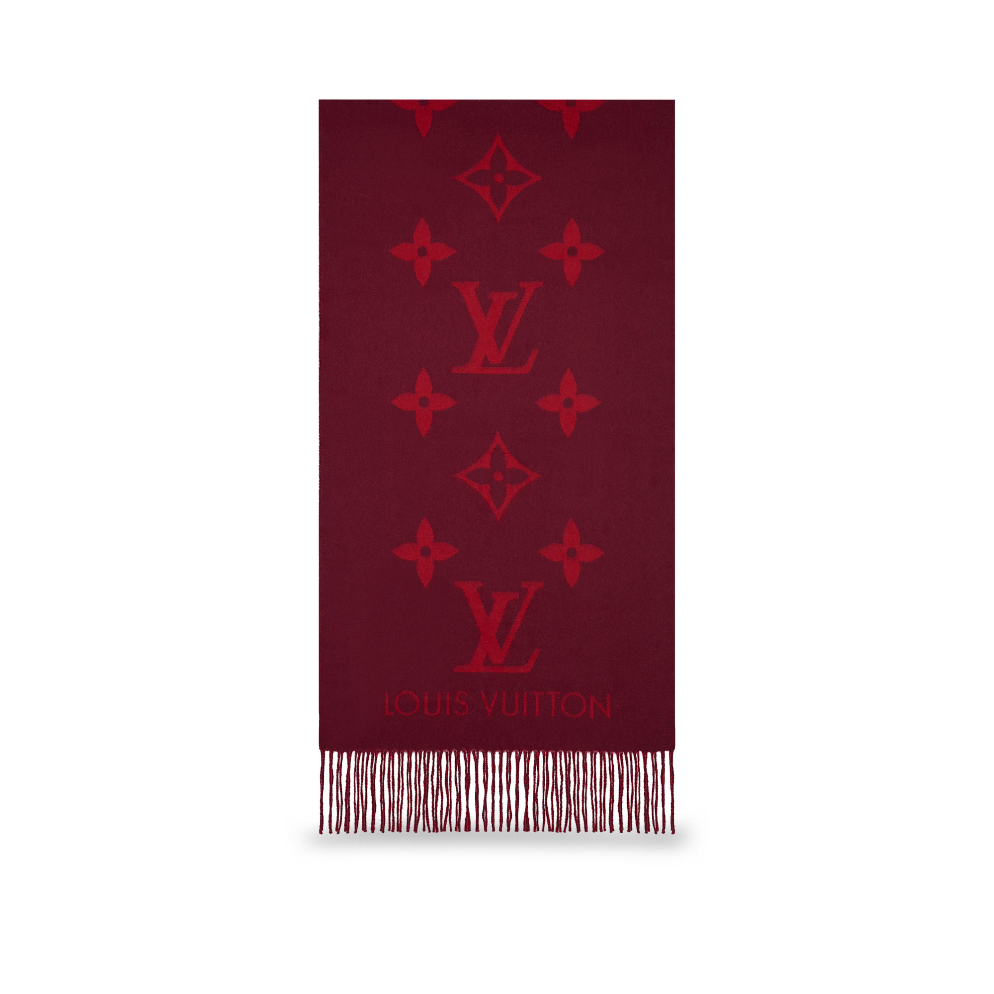 This soft, all-cashmere scarf with a tone-on-tone Monogram pattern is an essential accessory for winter warmth and style.