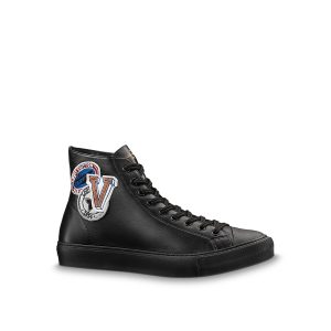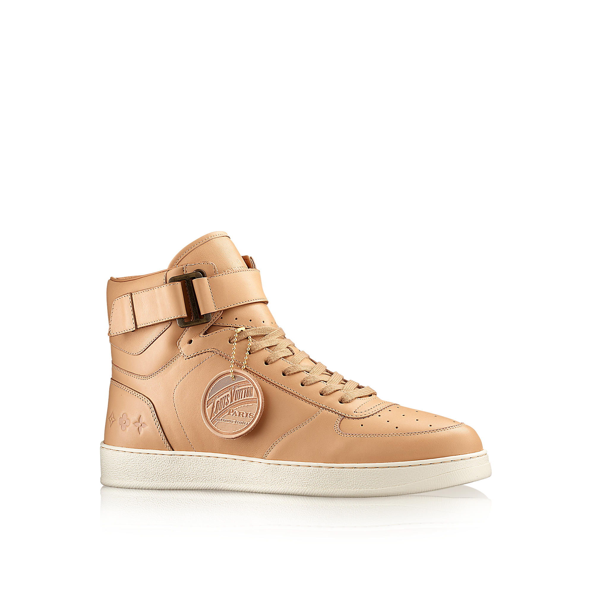 Sneaker in natural calf leather with Louis Vuitton embossed in gold at the back of the shoe and a rubber outsole.