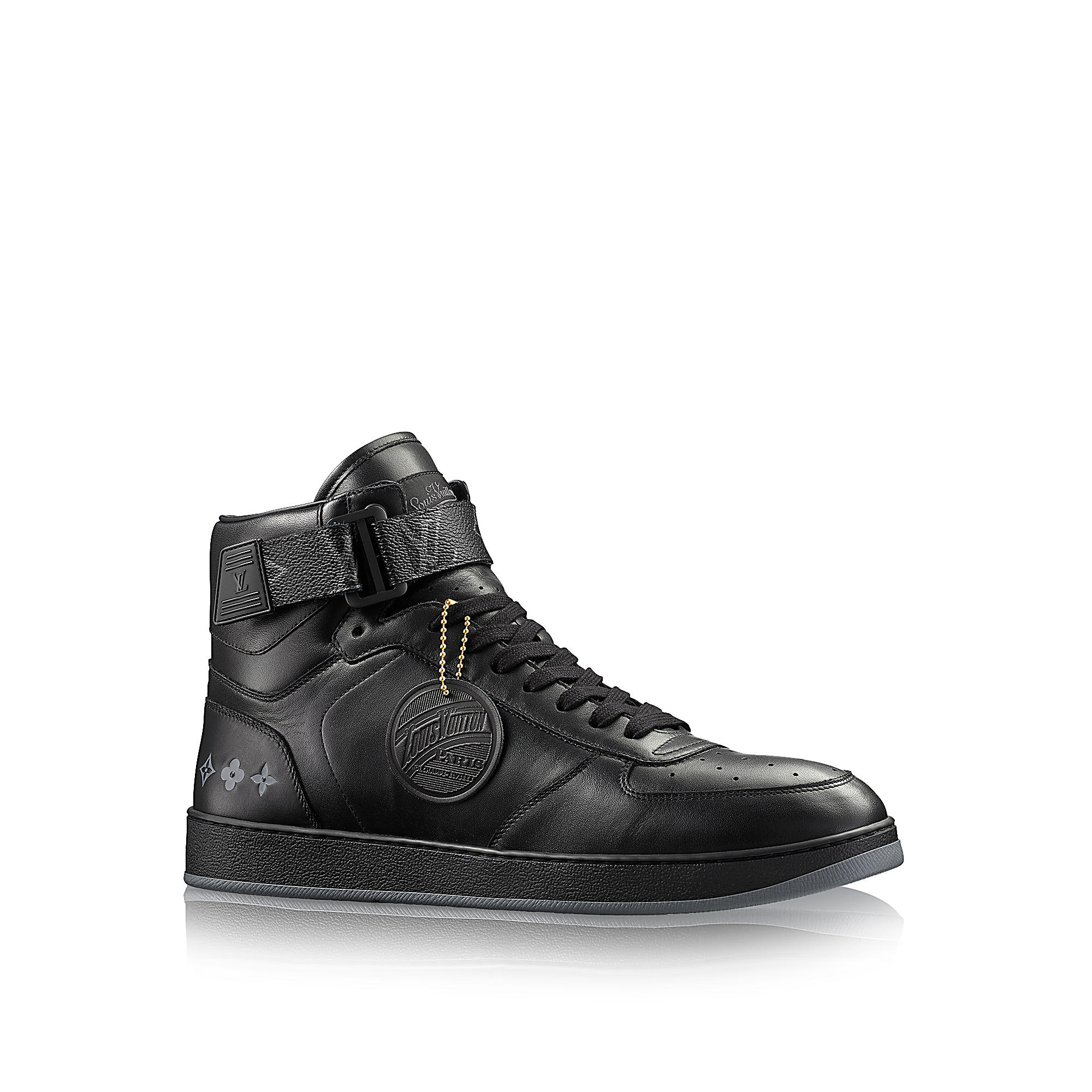 Sneaker boot in plain calf leather and Monogram canvas with rubber outsole.