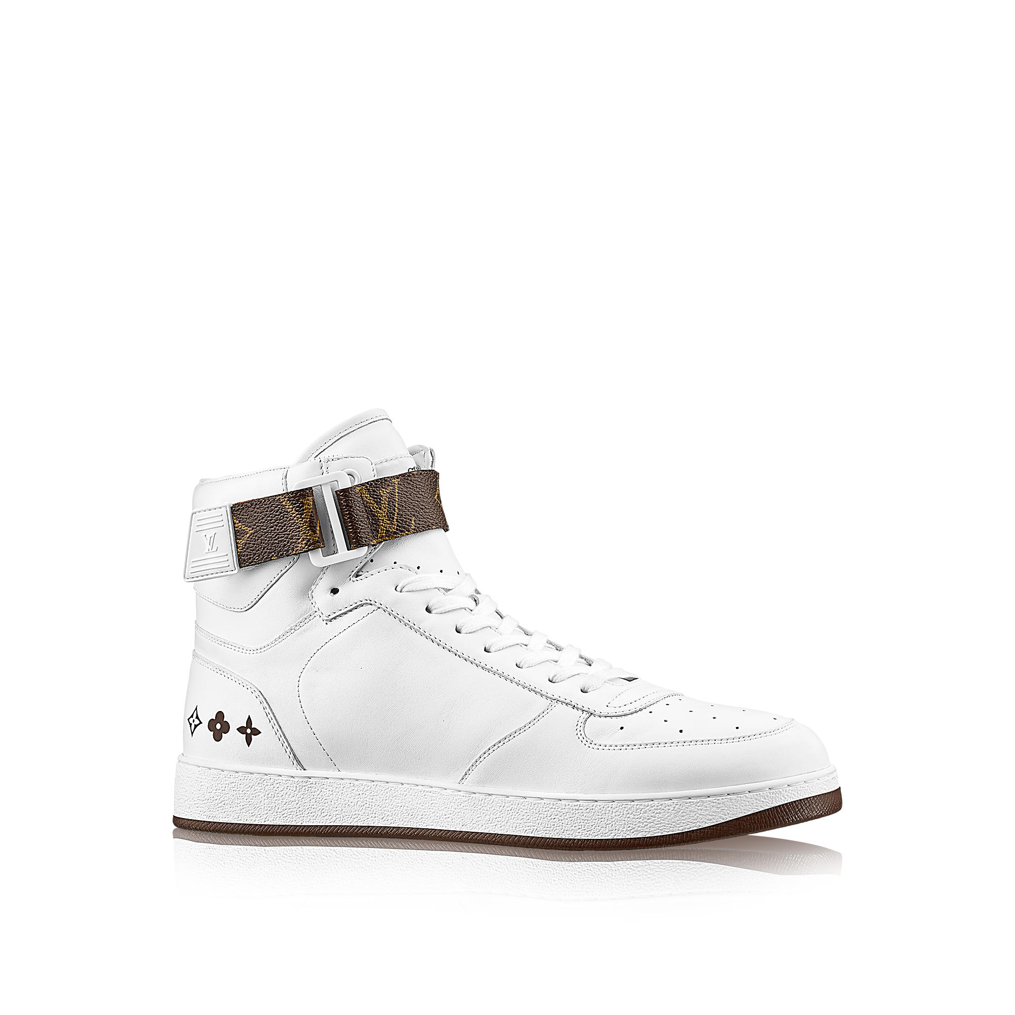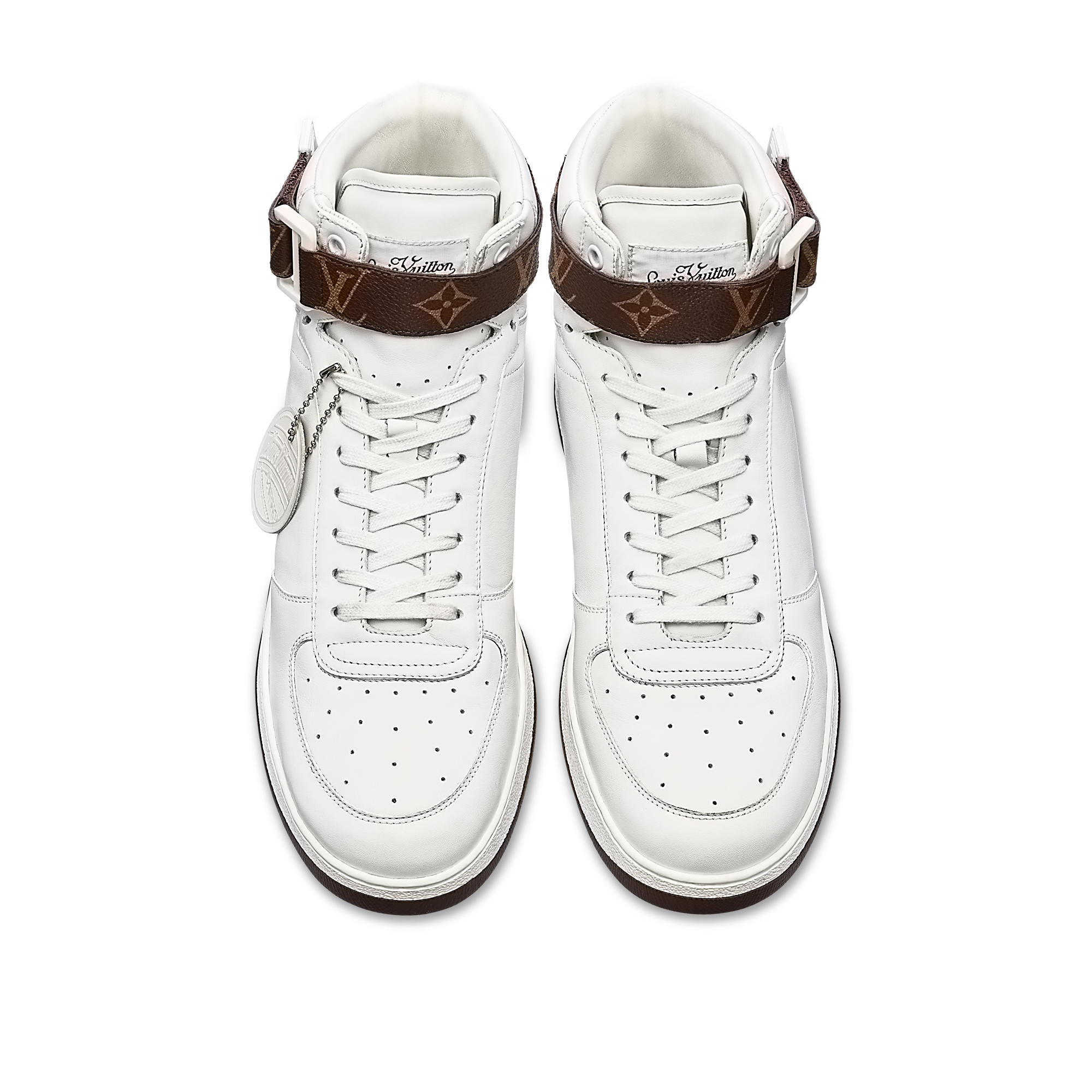 Sneaker boot in plain calf leather and Monogram canvas with rubber outsole.