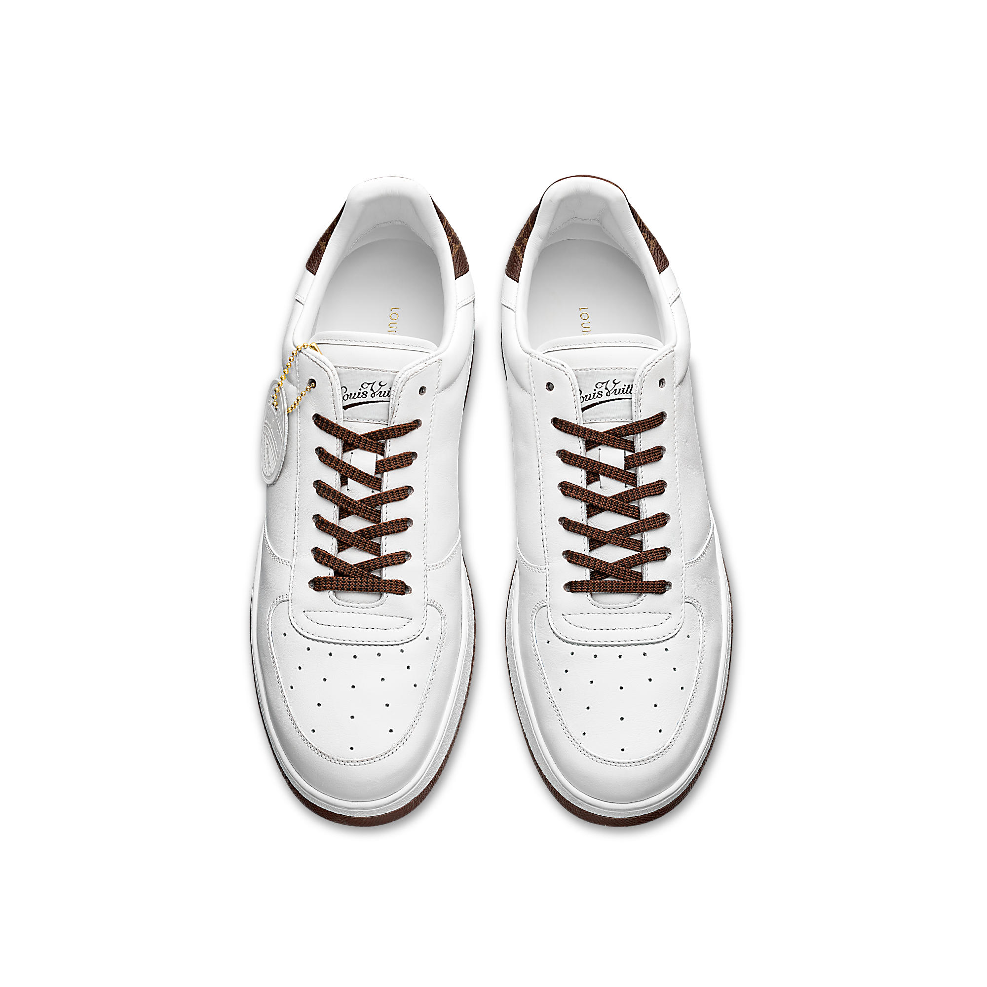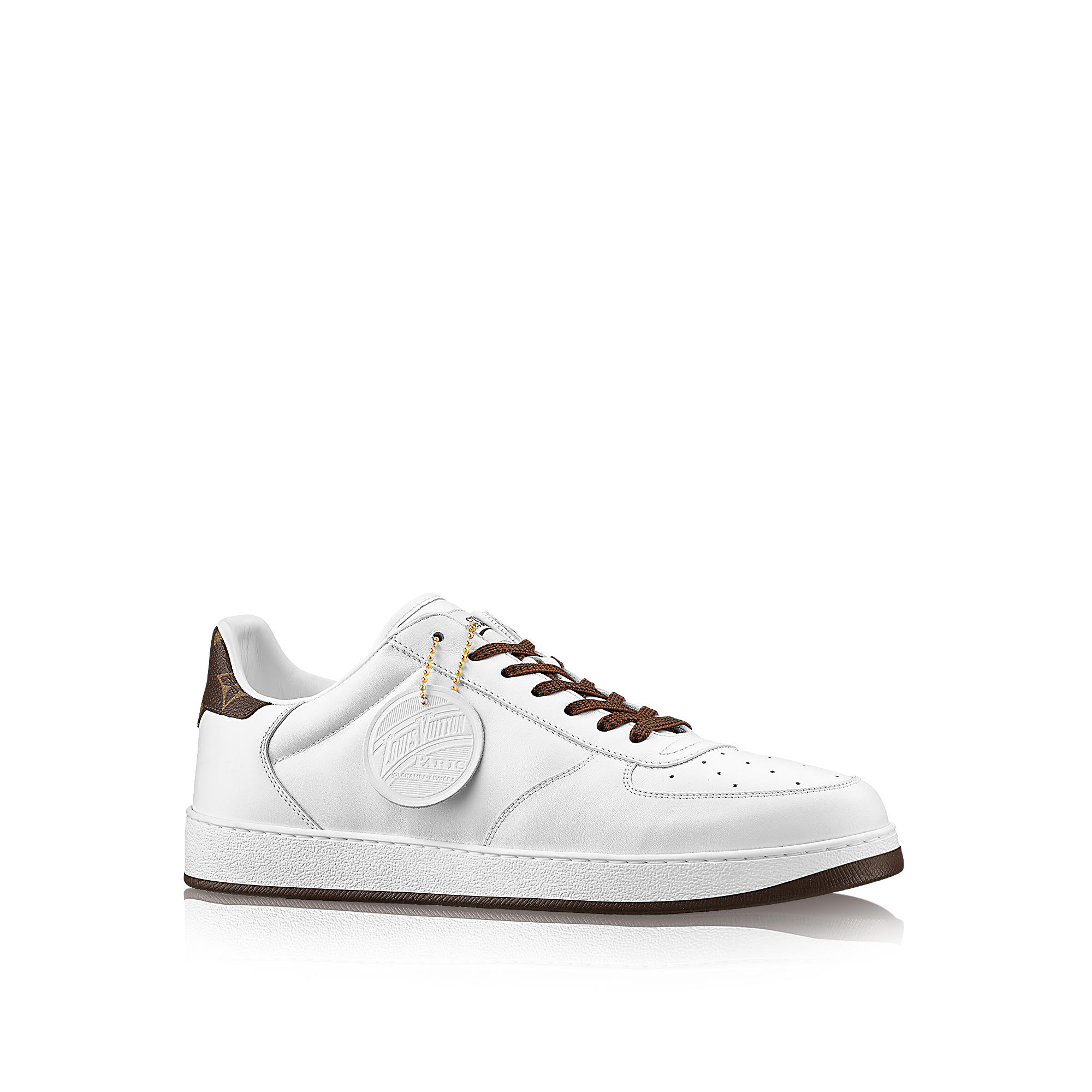 Sneaker in plain calf leather and Monogram eclipse canvas with rubber outsole.