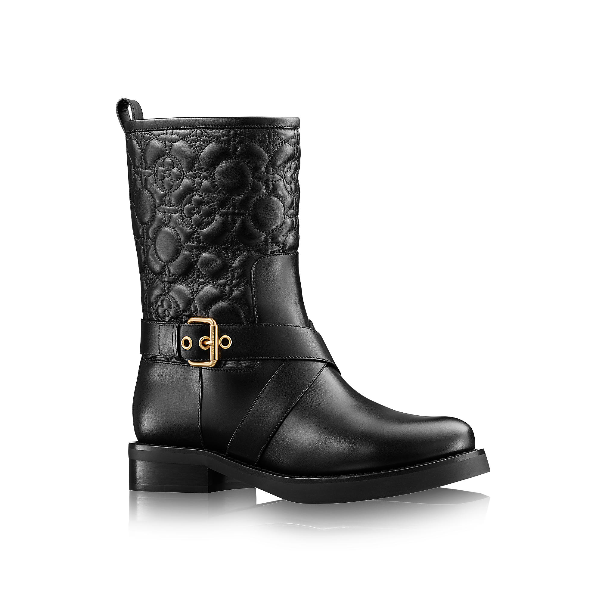 This chic take on the classic biker boot is distinguished by intricate Monogram flower quilting and a snug lamb fur lining.