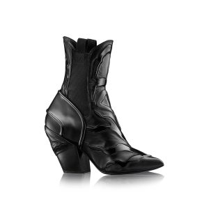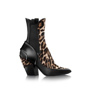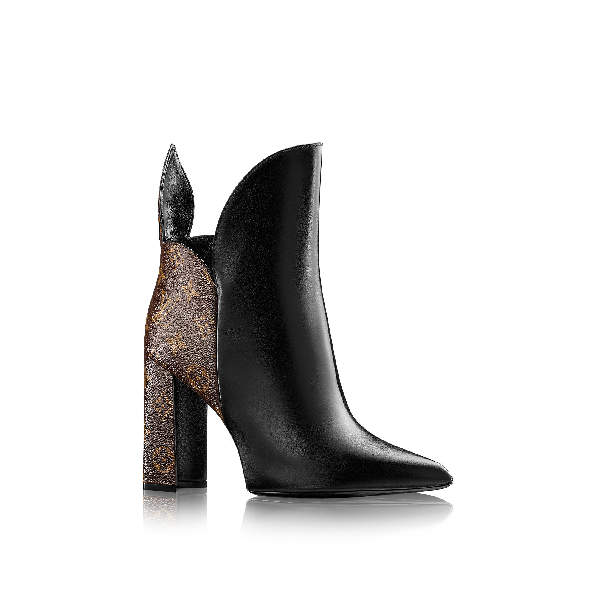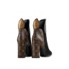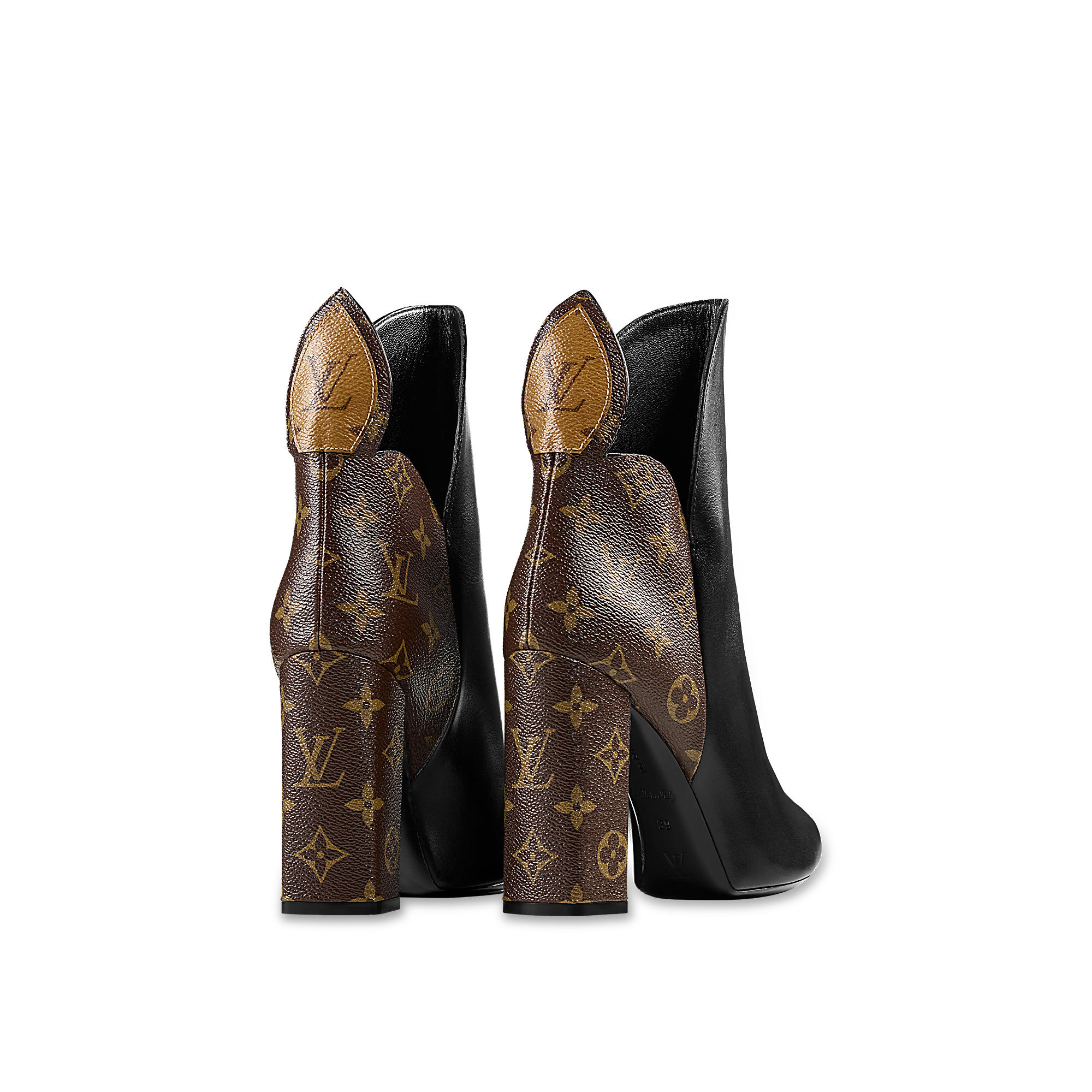 An iconic look from the Spring/Summer 2017 fashion show, this ankle boot combines a plain calf leather front with a Monogram canvas back. Standout details include the flower-cut heel and petal-shaped back, inspired by Louis Vuitton’s iconic Monogram flowers.