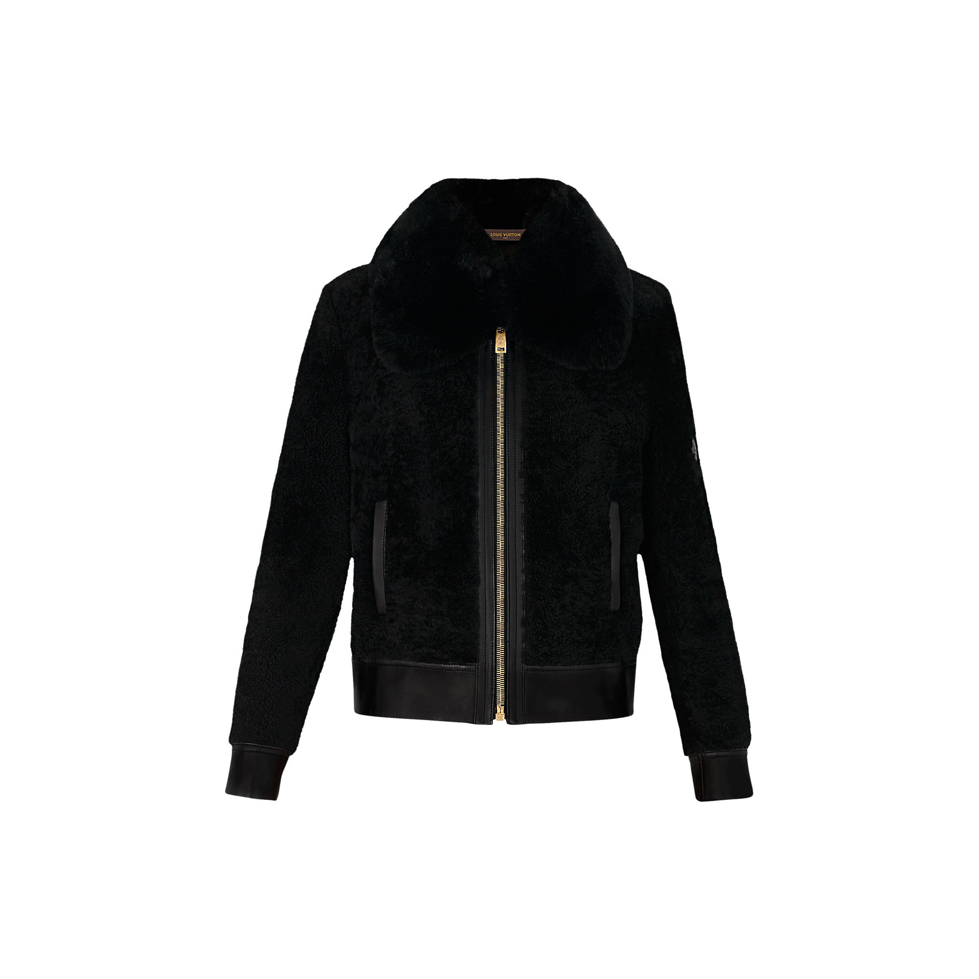 Crafted in suede astrakan, this shearling jacket features a removable sheared fox collar. Leather details abound: pleated leatherwork on the arms, leather trim on the pockets and along the gold zipper.