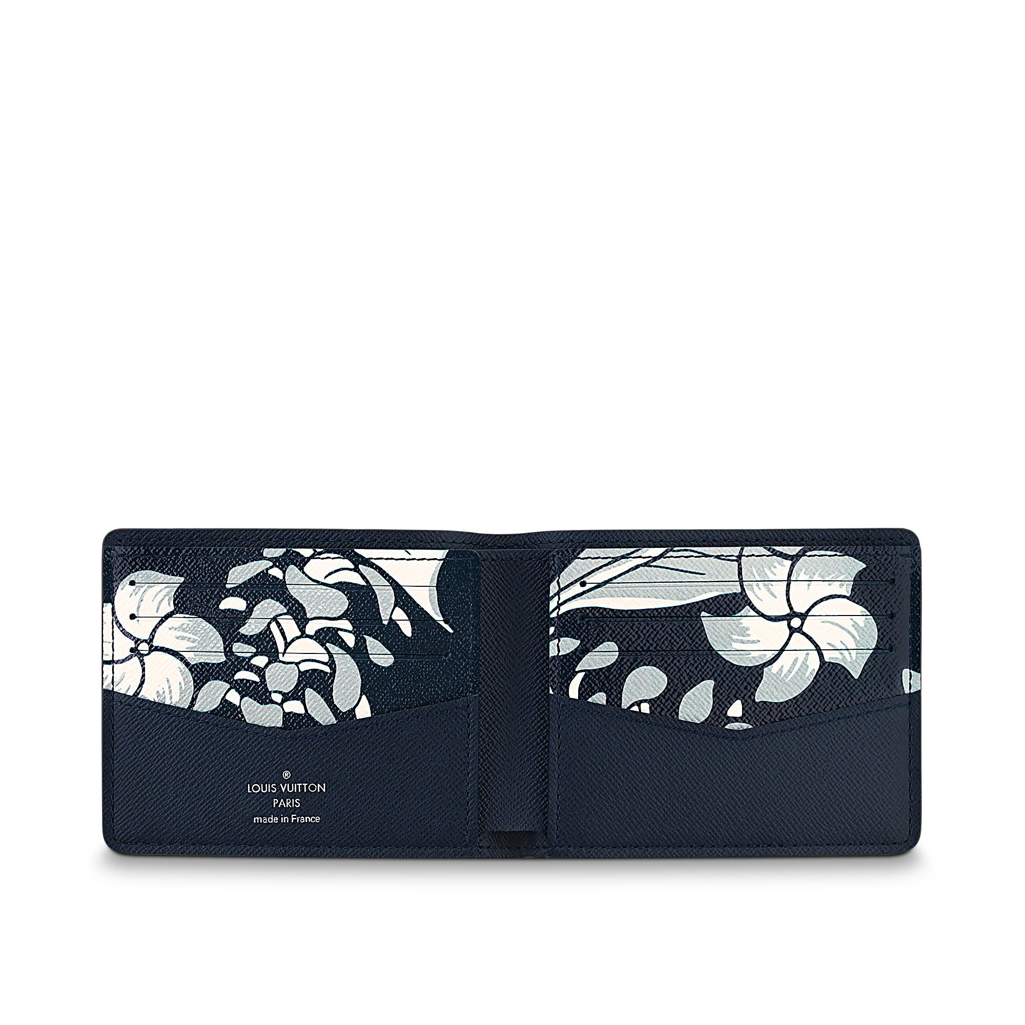 Louis Vuitton’s Slender wallet is a space-efficient design which holds all the essentials, yet still fits into a front or back pocket. In emblematic Taiga leather, it is given a playful twist with a bold Hawaiian-print lining.