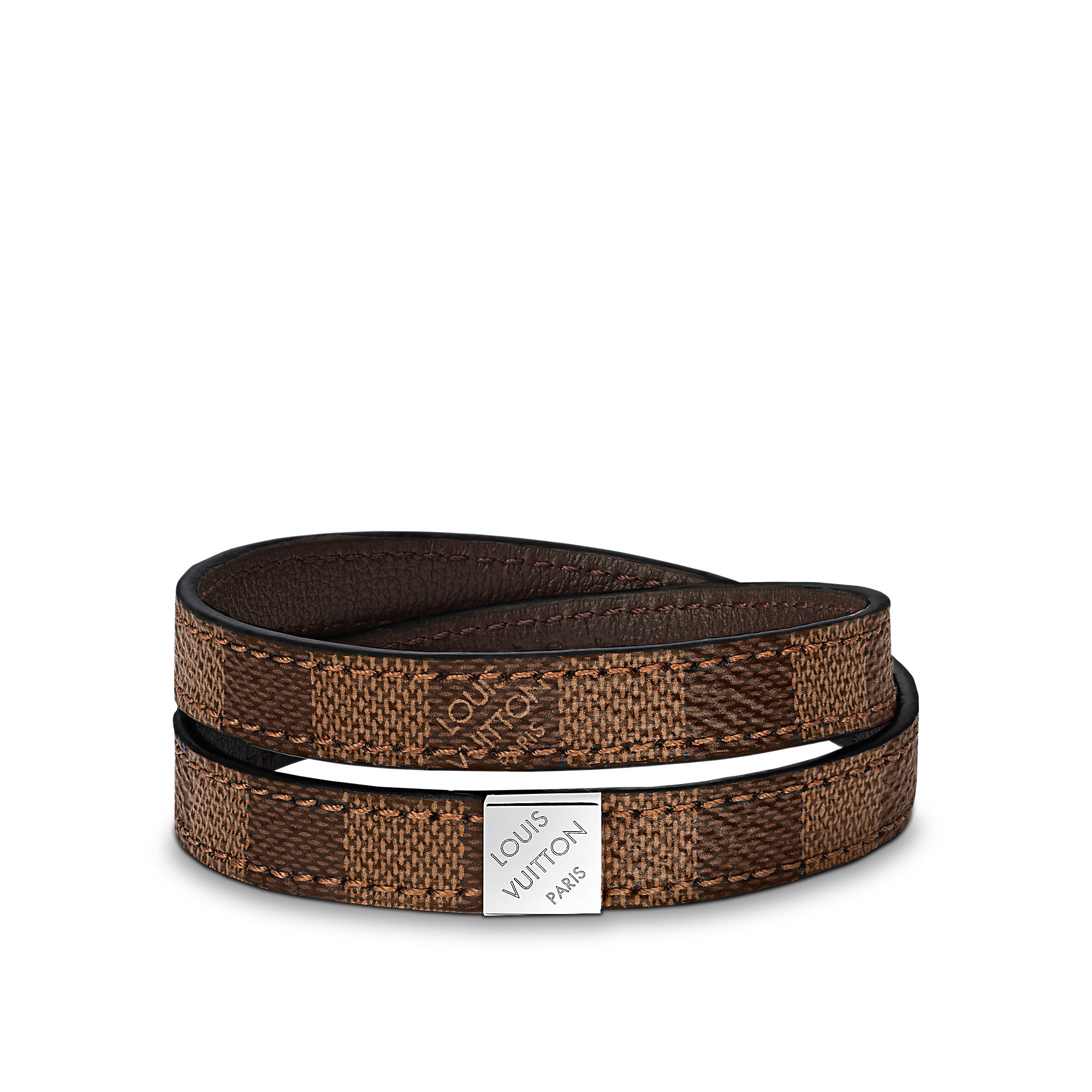 The thin strap of the new Snap bracelet wraps twice around the wrist, for an accessory at ease with both business and casual looks. Made of Damier canvas, it is finished with a metal square that echoes the Damier motif, engraved with the “Louis Vuitton” signature.