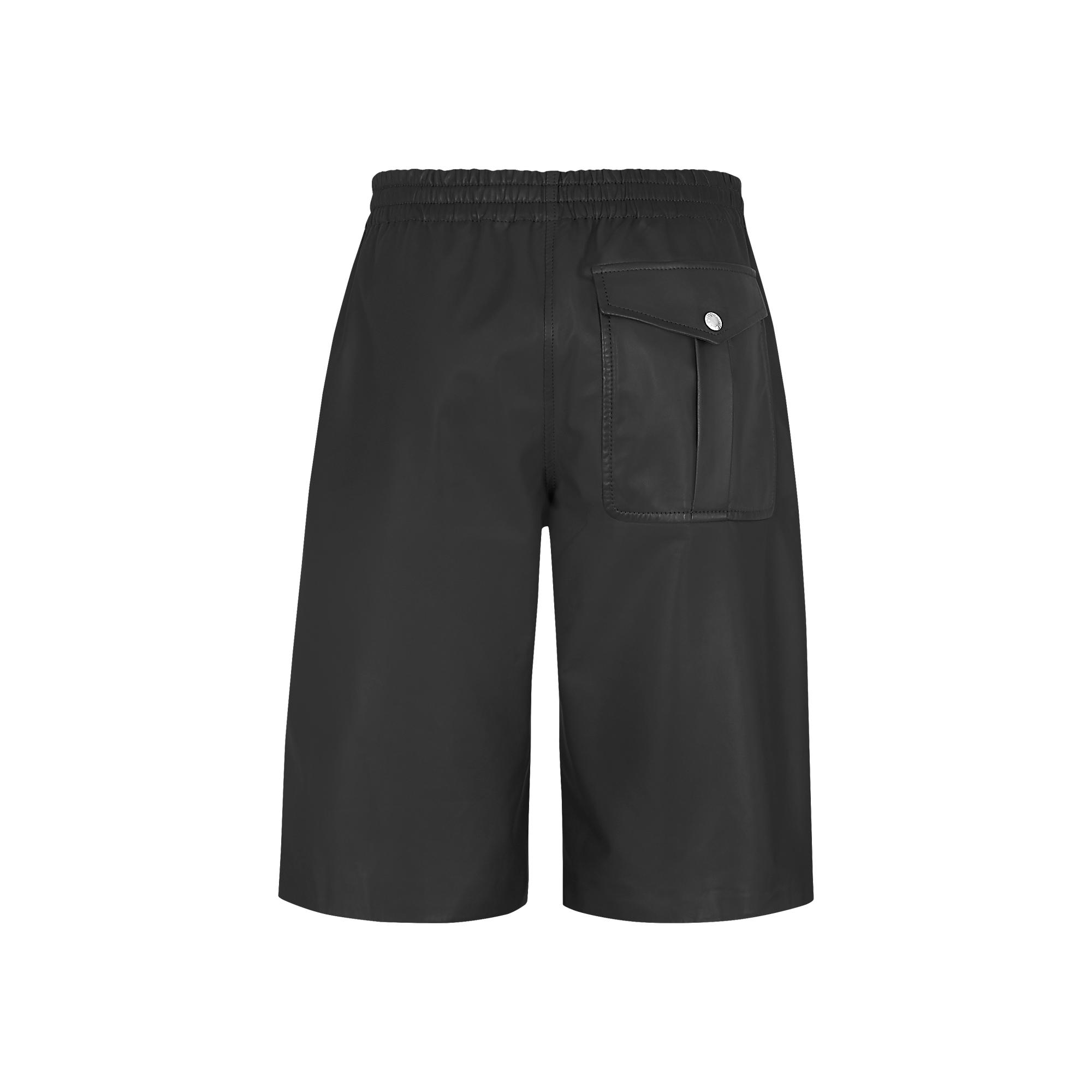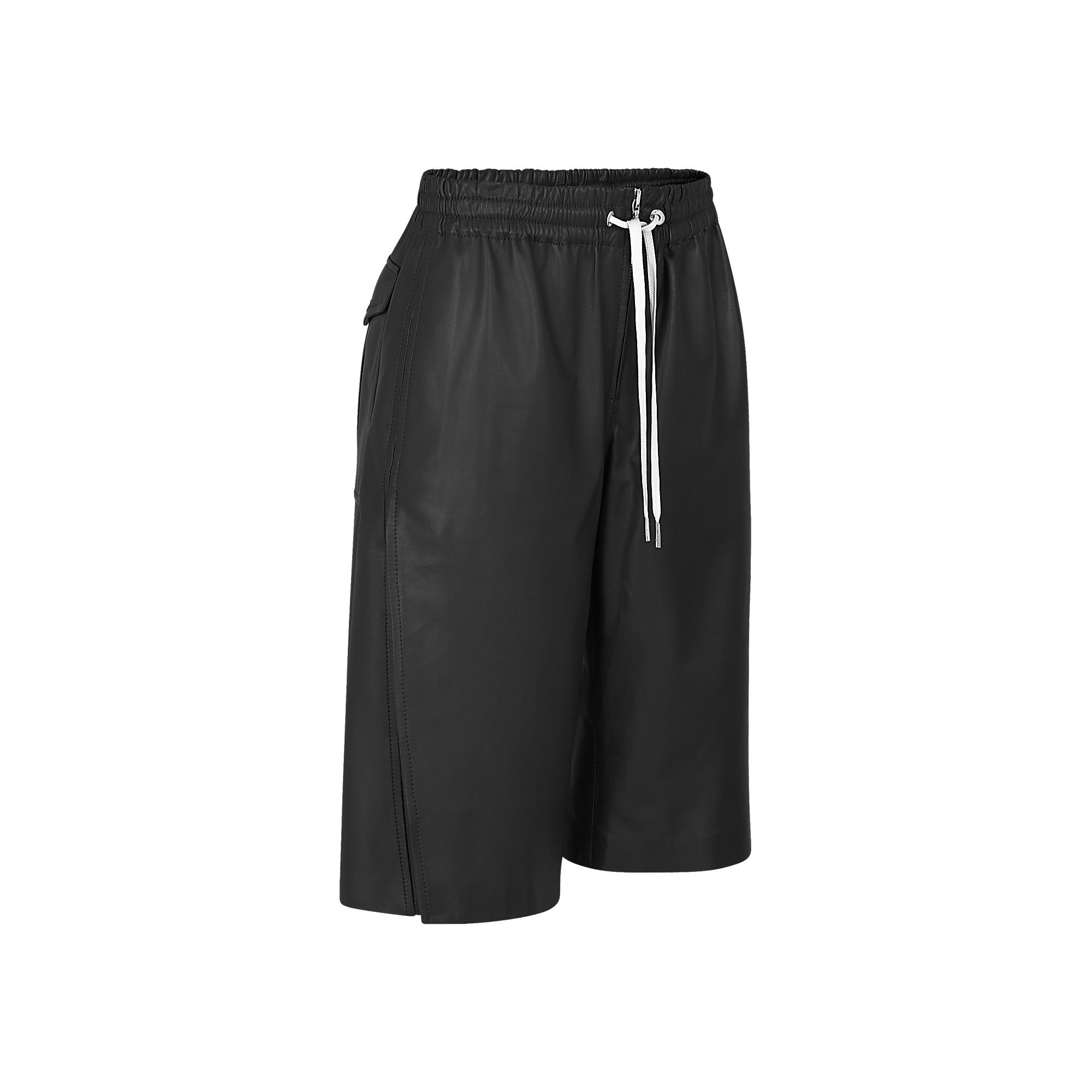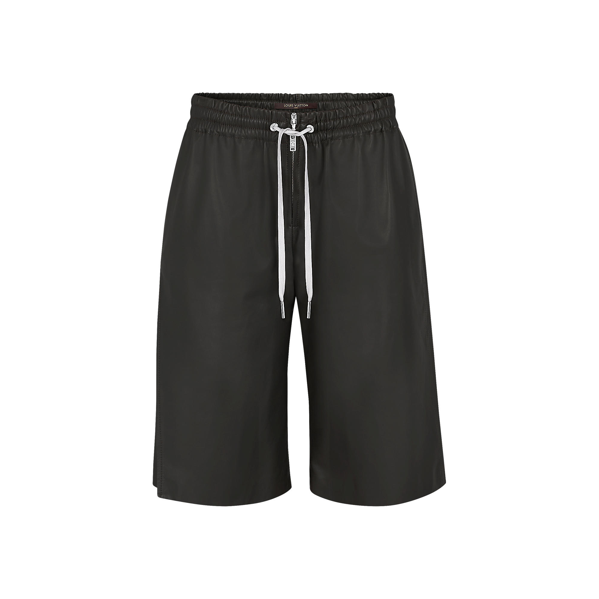 These bermuda-length shorts are made of supple lambskin with an elastic waistband that laces in front like sweatpants.