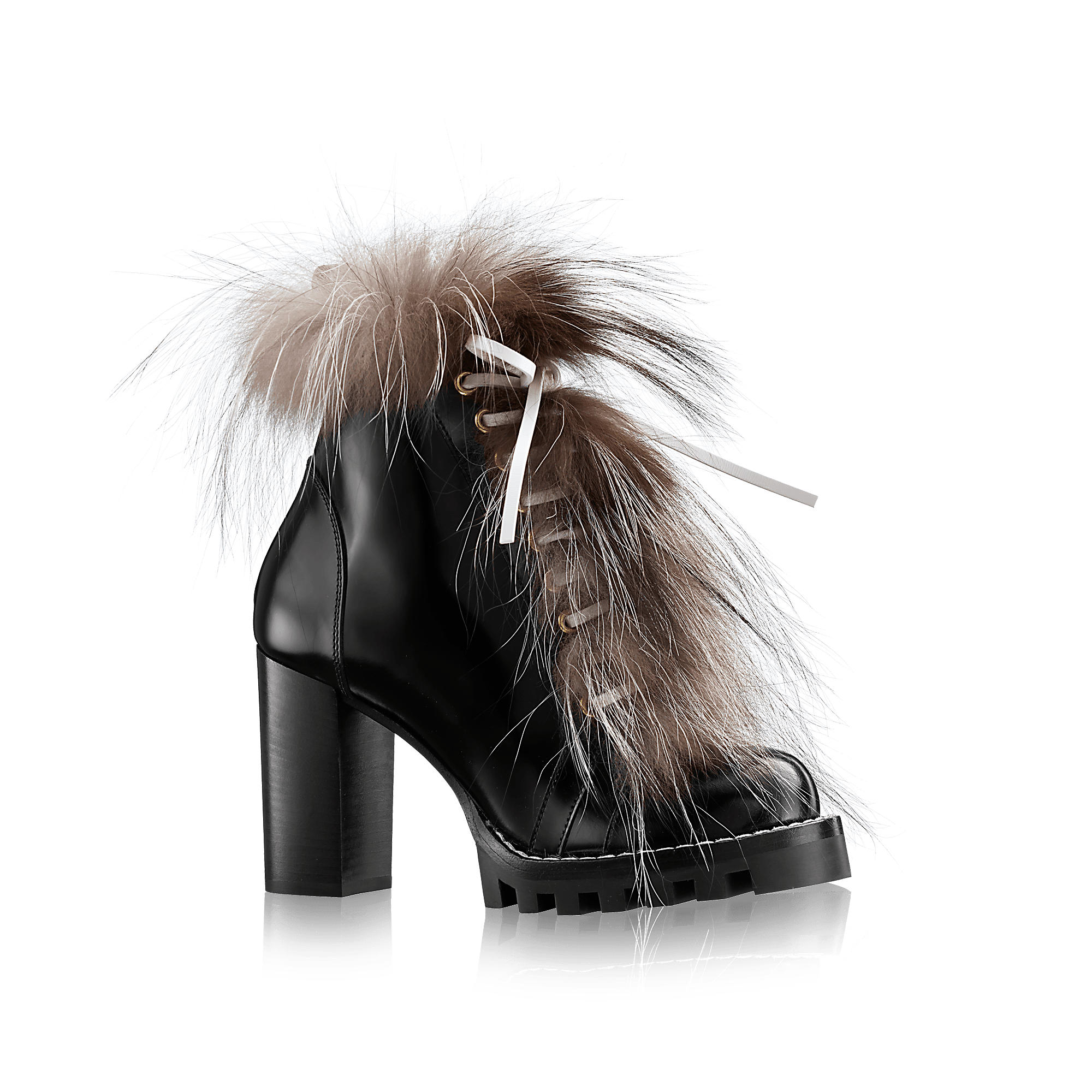 The now iconic Star Trail lace-up boot is reinterpreted with a luxurious silver fox fur ornement.