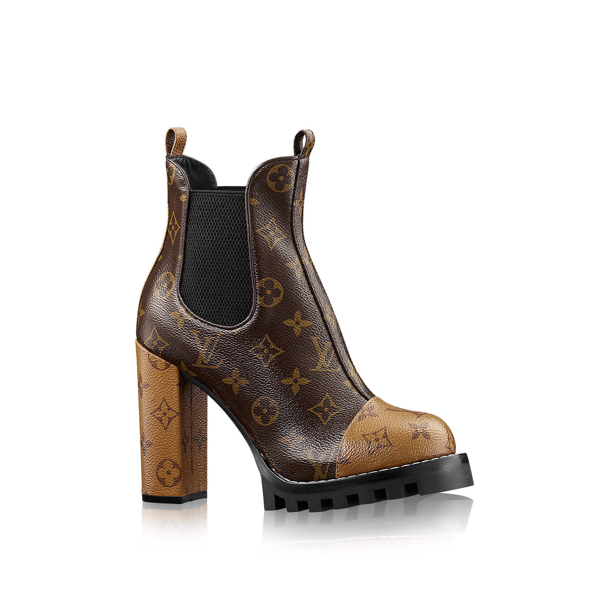 The now iconic Star Trail ankle boot is given a fresh twist this season with a new design featuring side elastics and variations on Monogram canvas.