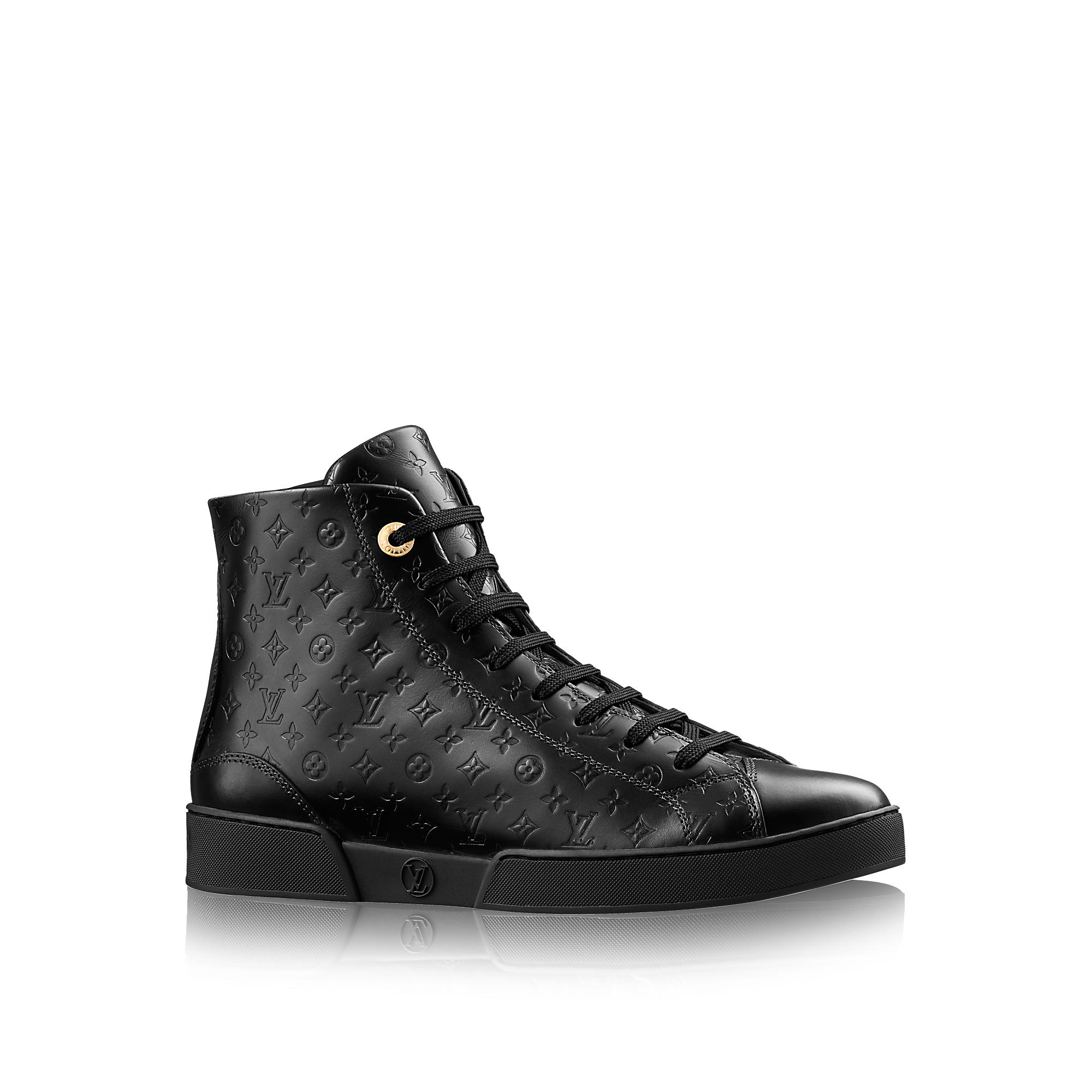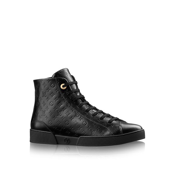 This classic hi-top sneaker in Monogram-embossed calf leather features a side zip for easy fitting.