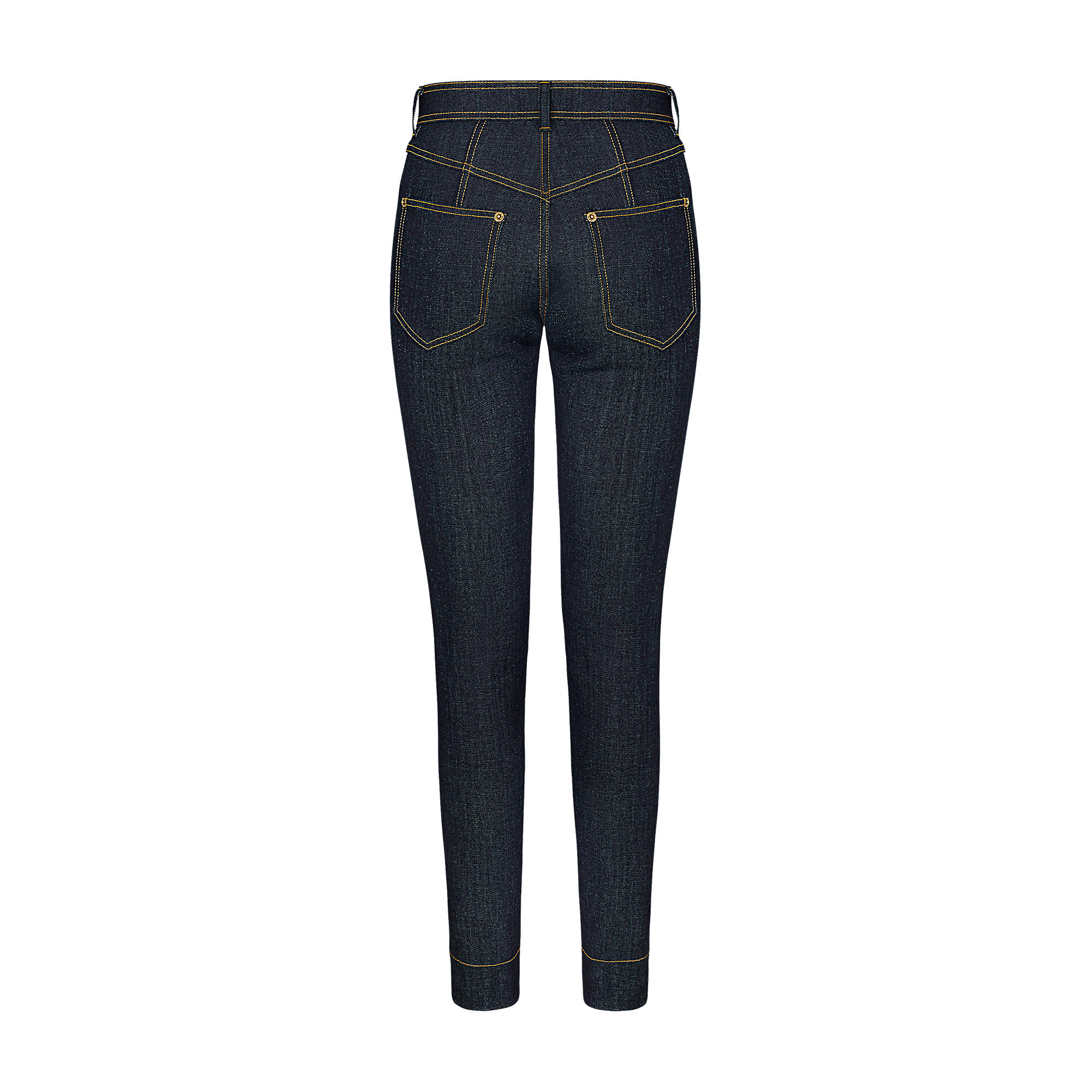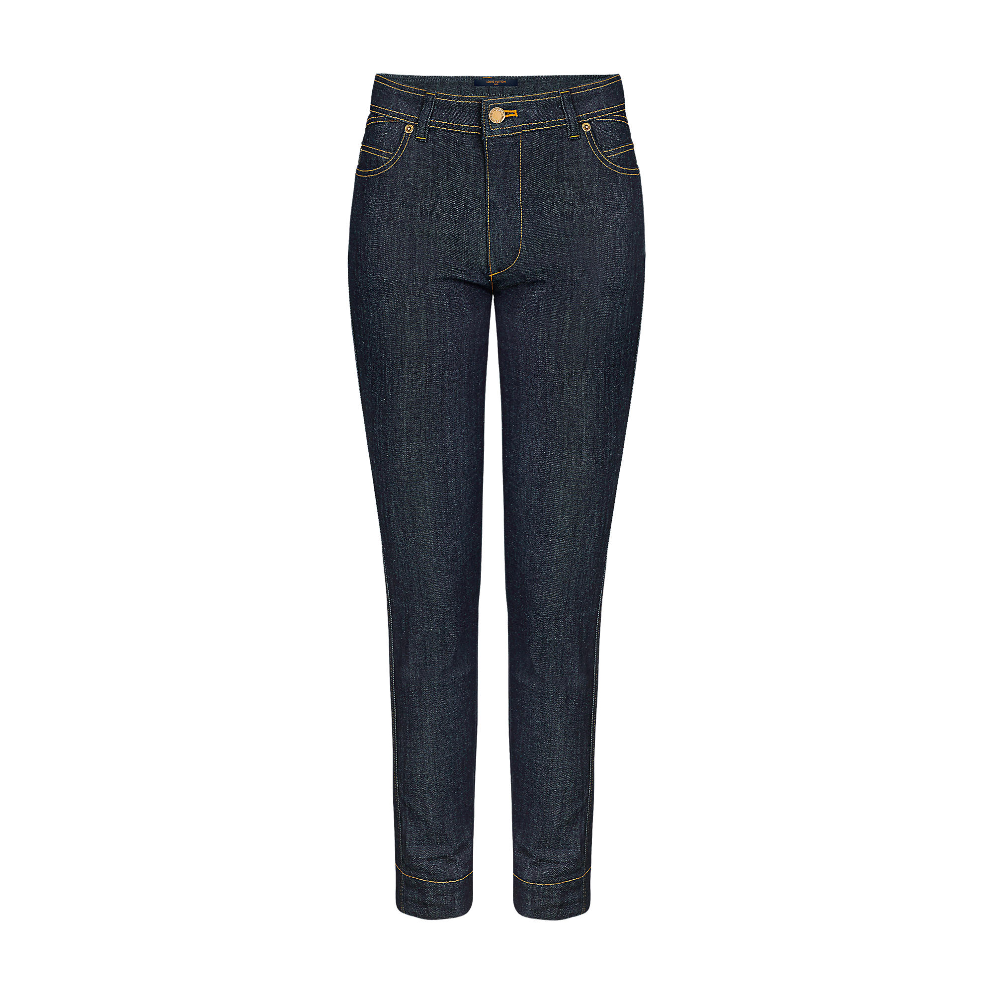 These slim cut jeans feature denim blended with a touch of stretch for added comfort. The V – a recurrent motif this season – is worked into a back pocket as a discrete Louis Vuitton signature in contrasting overstitching.