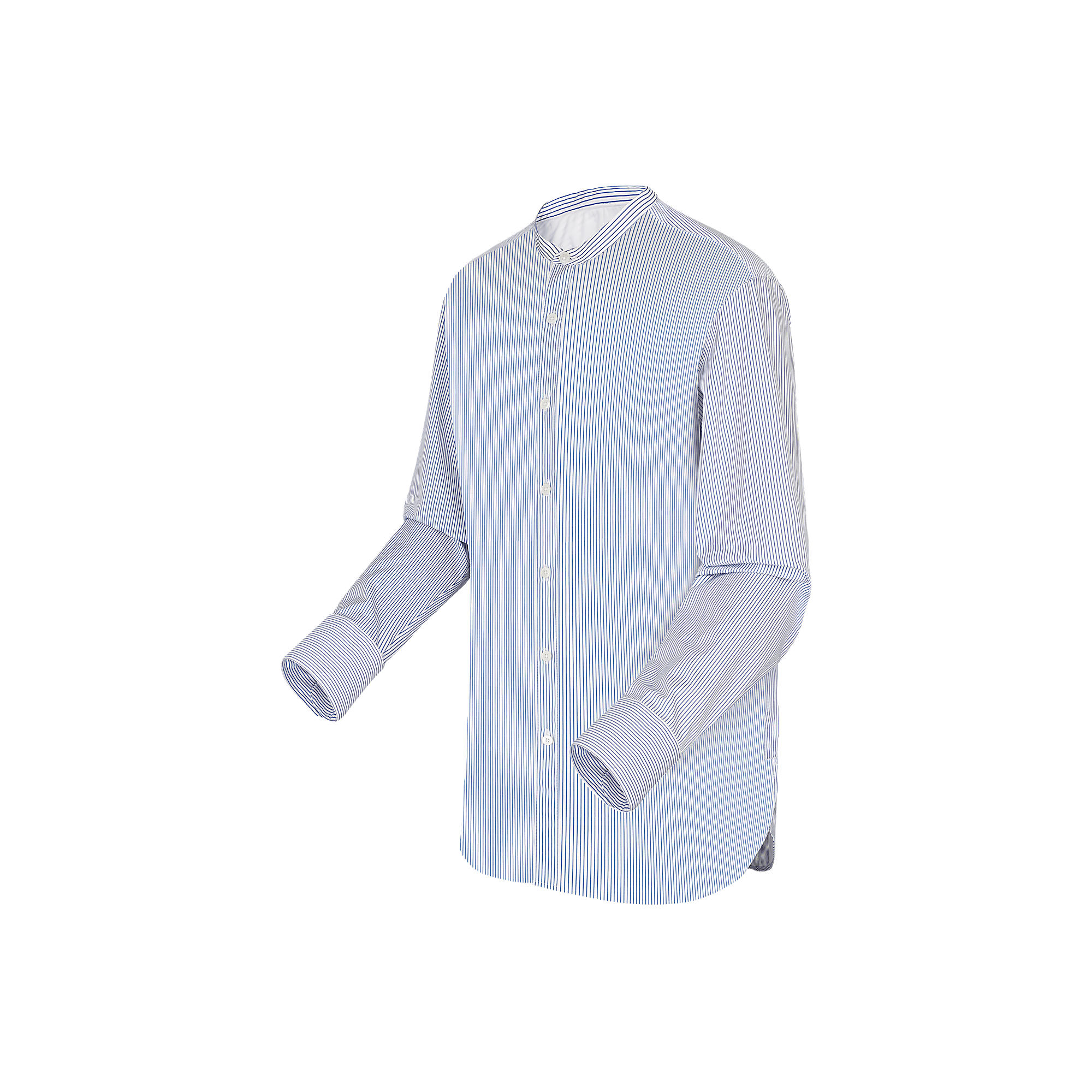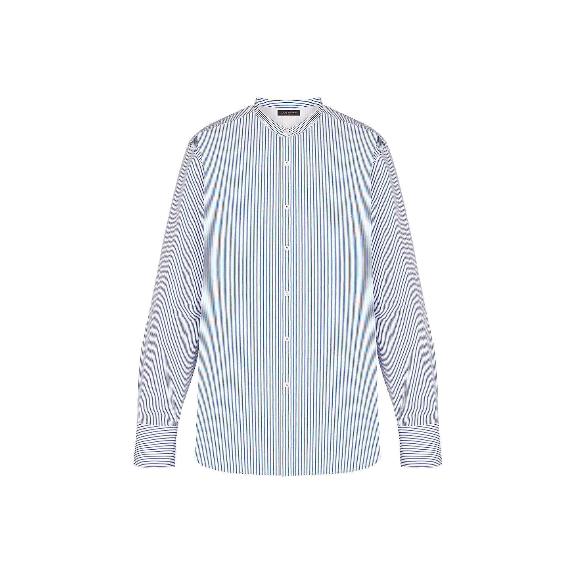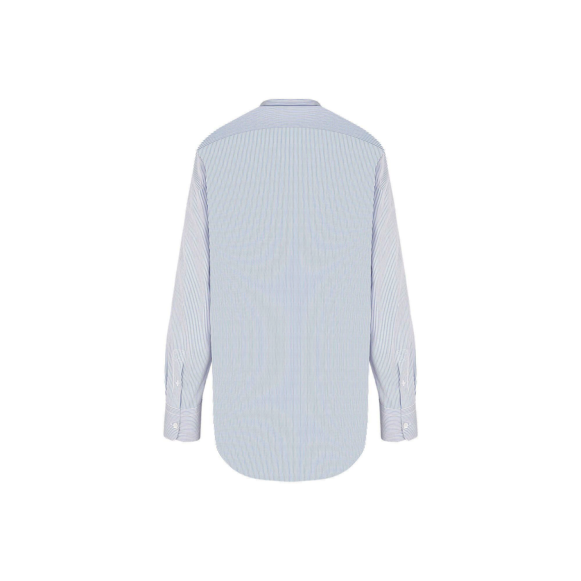 This elegant long-tailed shirt is cut to a new oversized fit, in striped cotton poplin with a beautiful soft finish. It features a smart grandad collar and a deep side vent that can be closed with buttons.