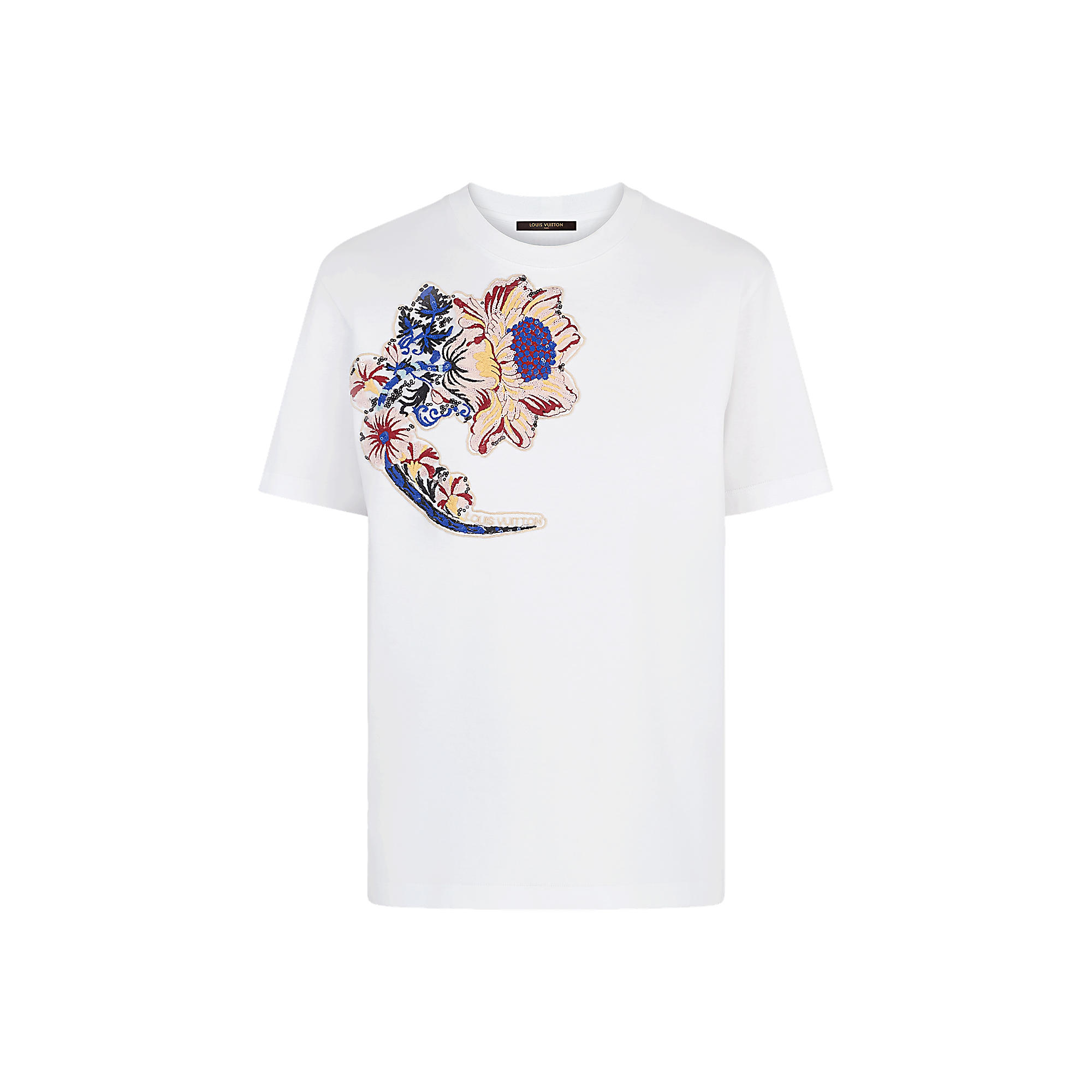 This casual chic piece incorporates the season’s new straight T-shirt shape, for a more modern fit and look. Perfect to combine with weekend looks, it is adorned with thread and sequin embroidery that recalls the collection’s floral prints and a discrete Louis Vuitton signature.