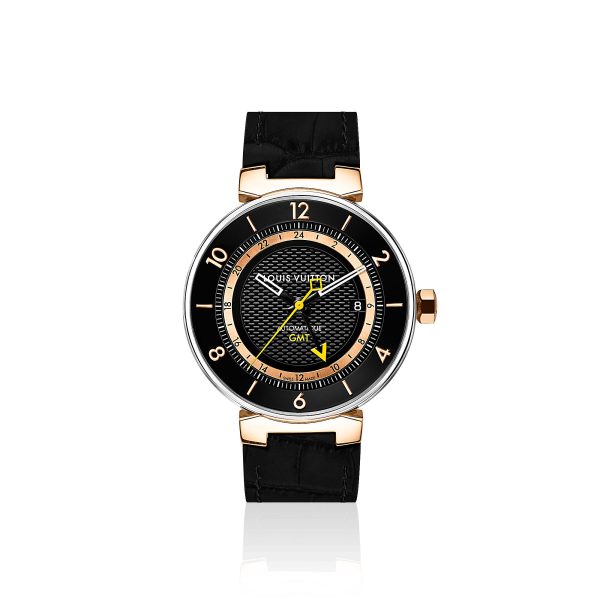 – Matte black dial, 24-hour time-zone in pink gold, black flange with 5N polished applique and indexes