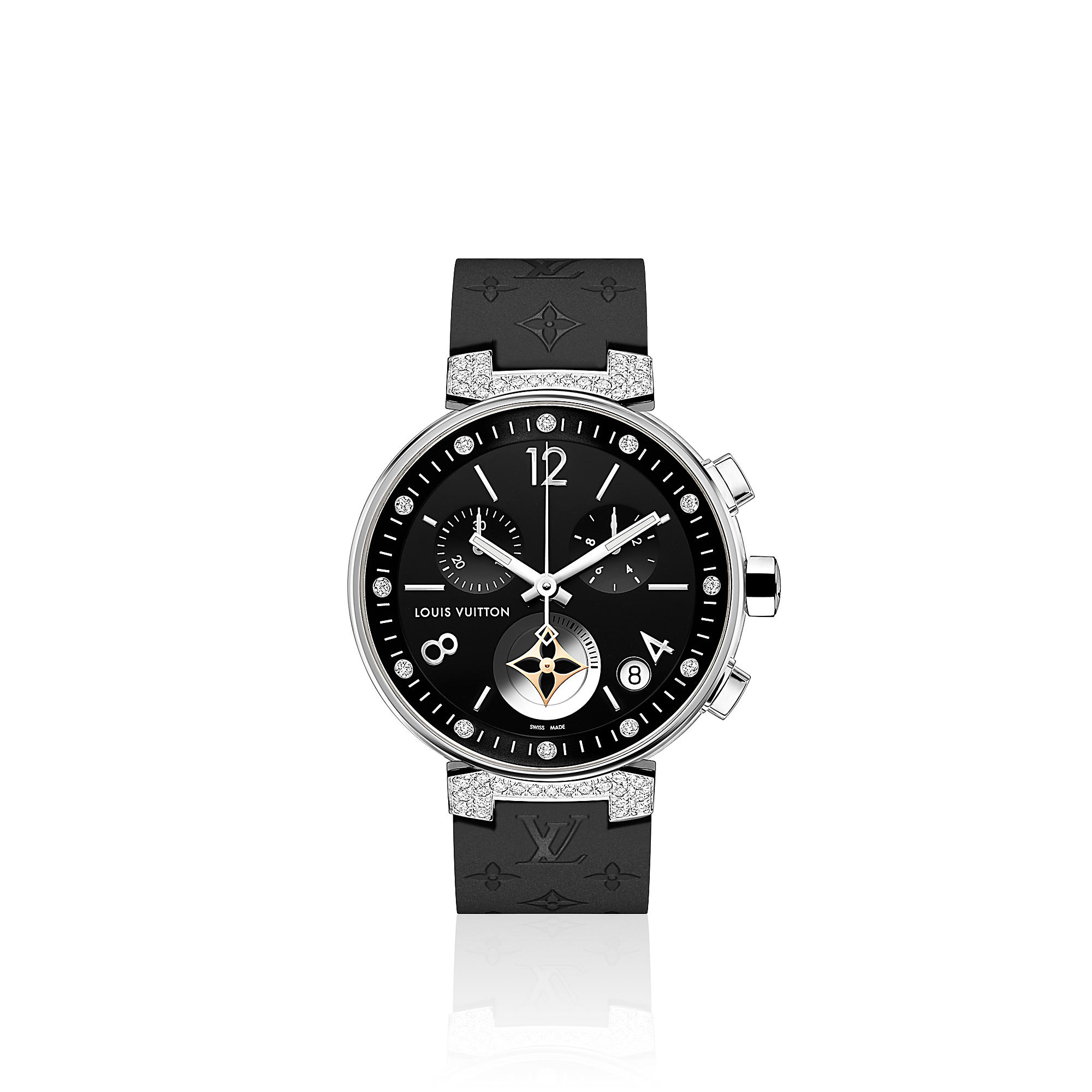 – Tambour Moon stainless steel case, horns set with 34 diamonds