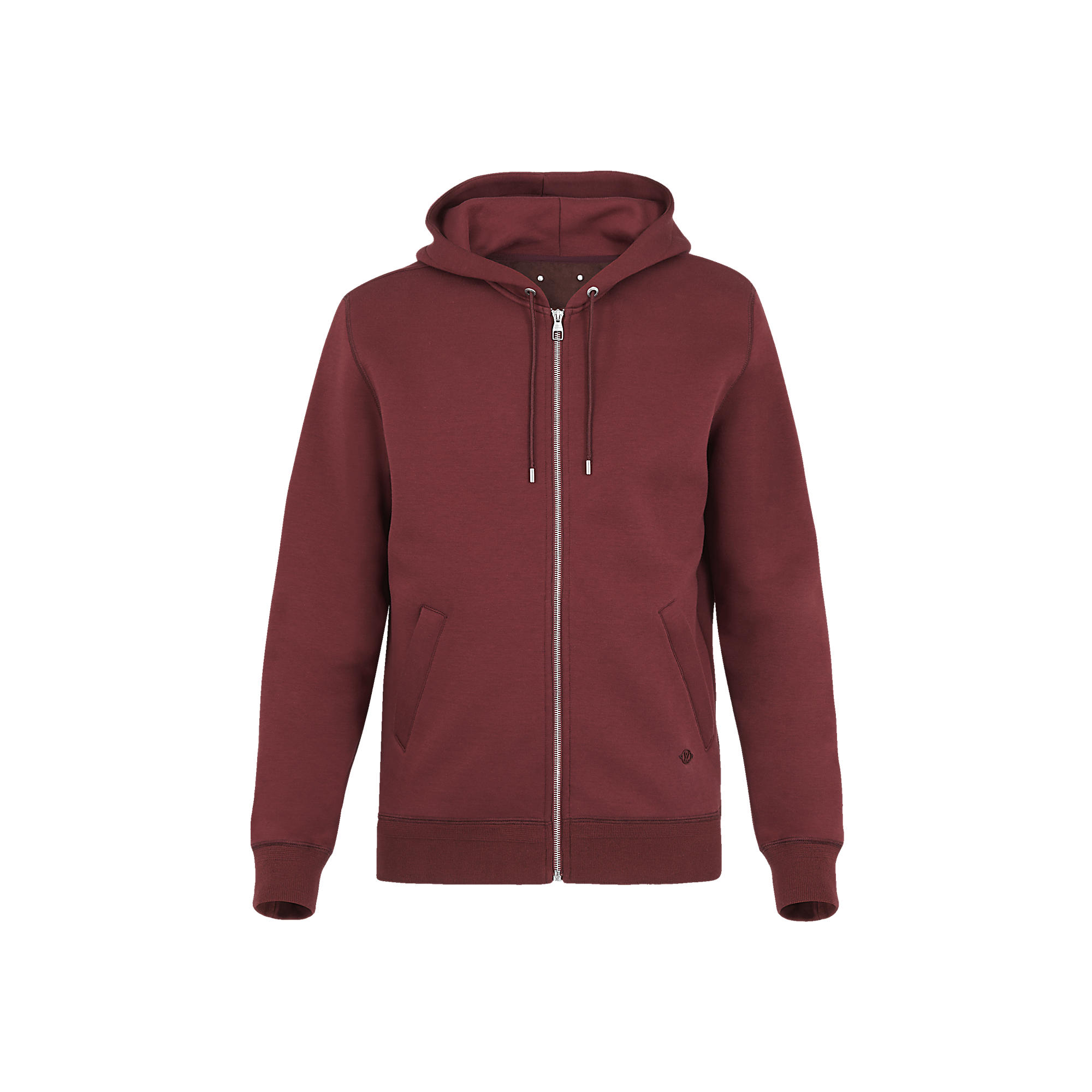 An iconic zip-up travel hoodie, tailored from a comfortable technical jersey fabric. The metallic LV circle medallion adds a discrete signature.